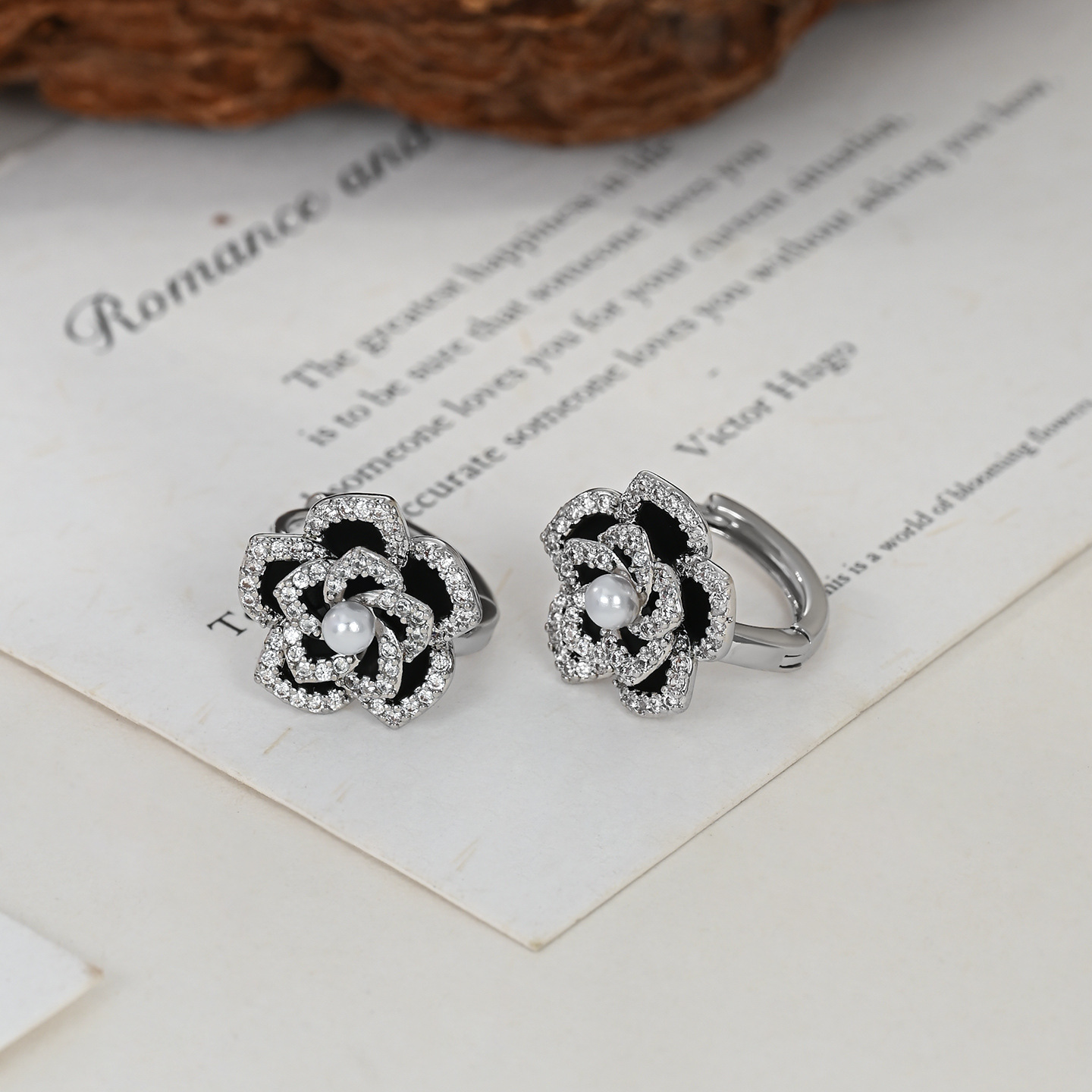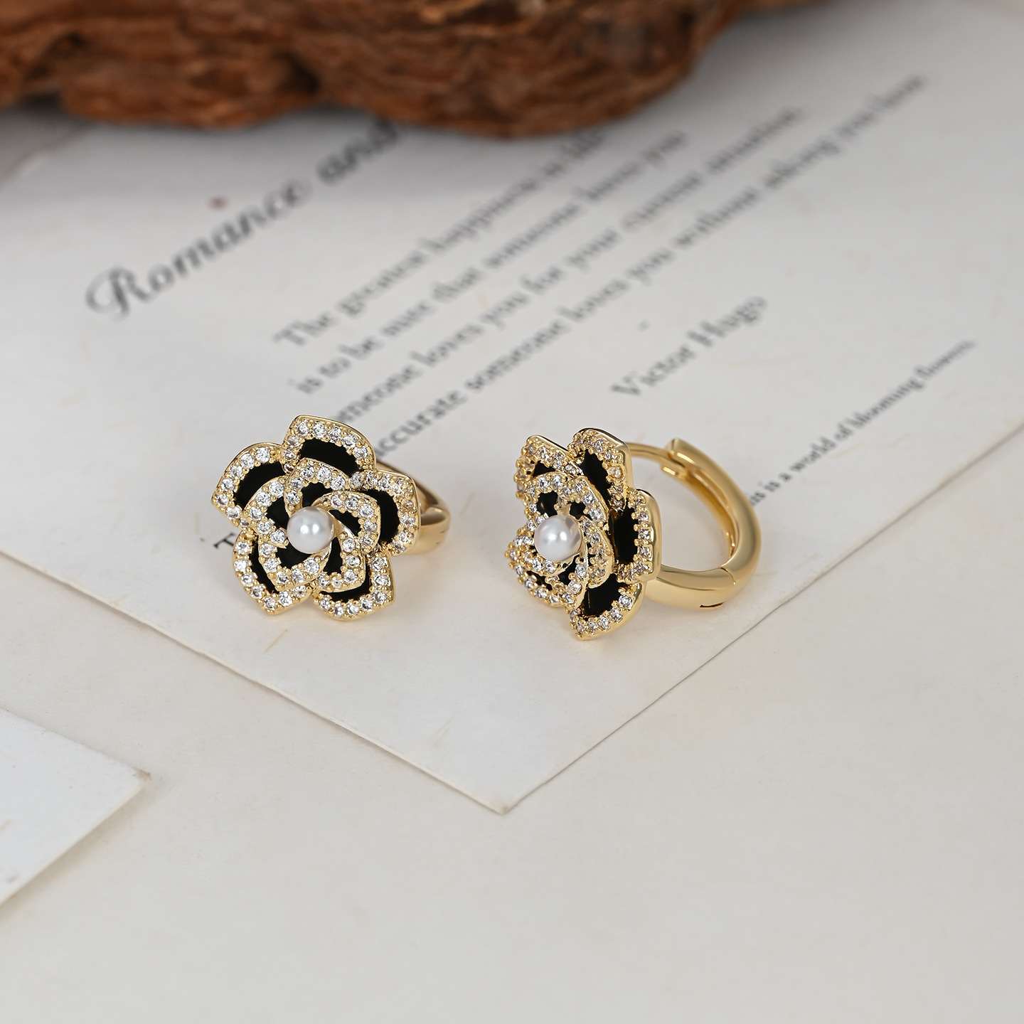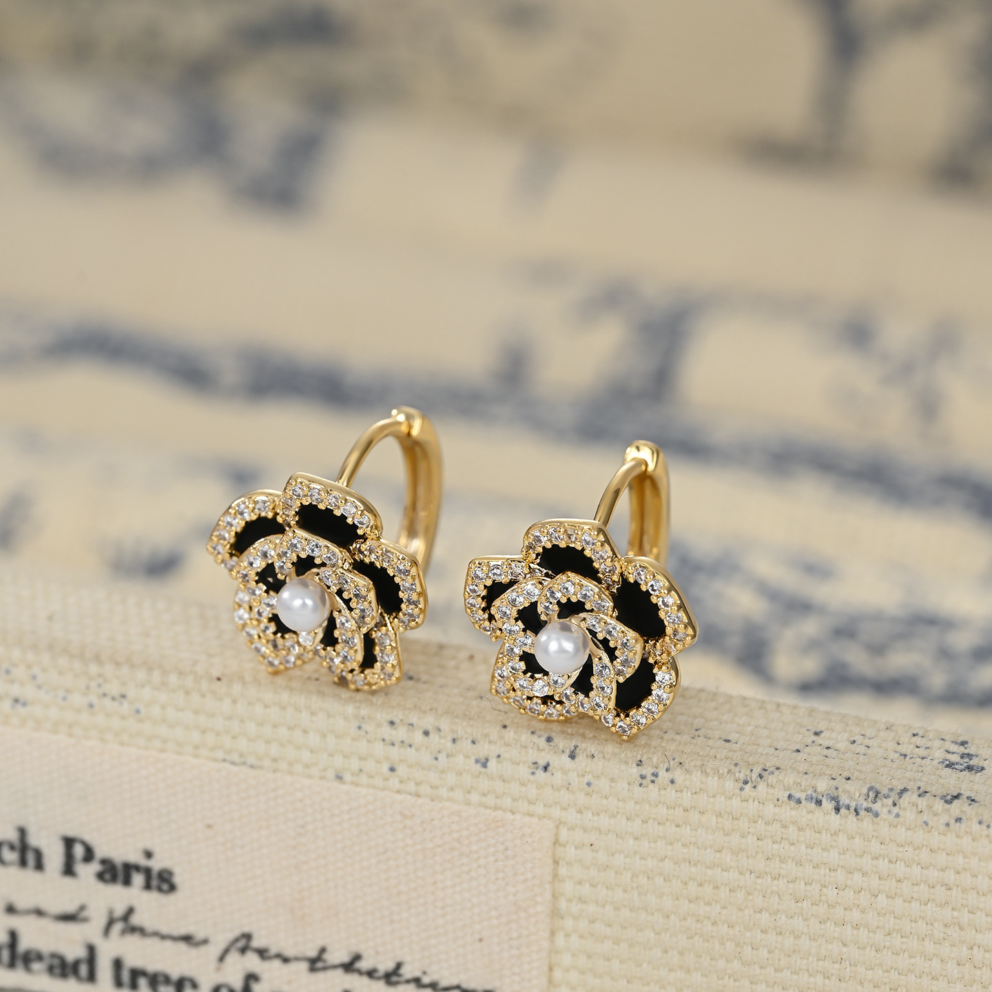 秋冬新款复古法式珍珠耳环女小众设计感珐琅滴油山茶花耳扣耳饰品 English | 投诉