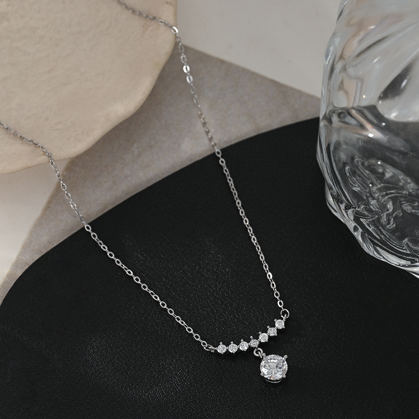 秋冬新款镶锆石气质锁骨链女小众设计感水滴吊坠流苏项链精致颈链 English | 投诉
