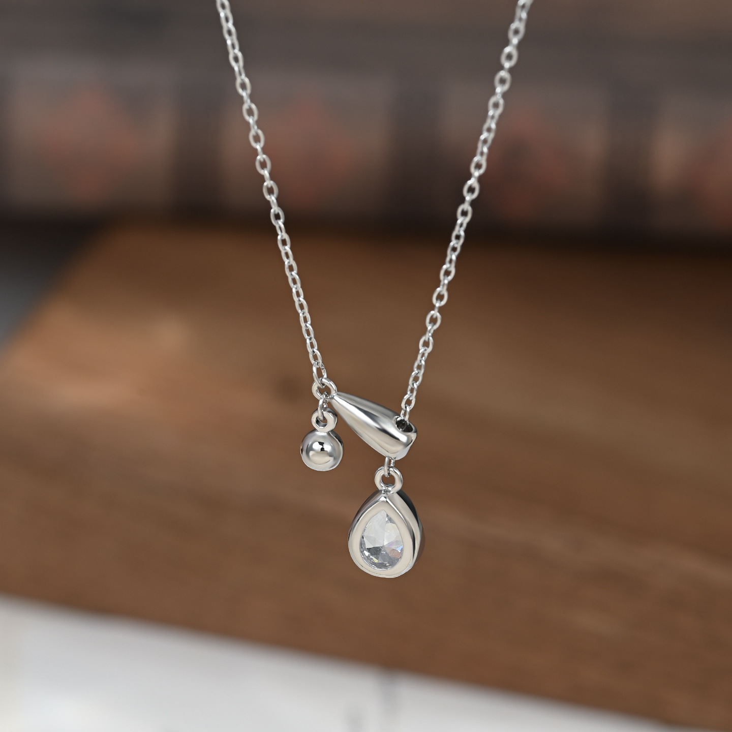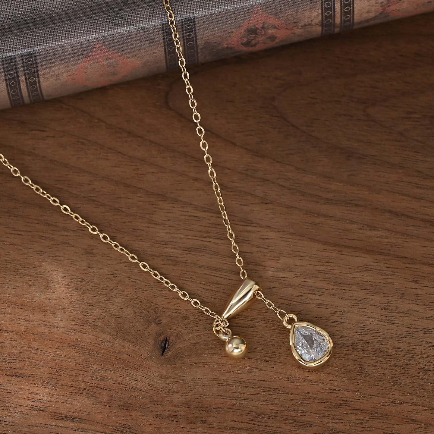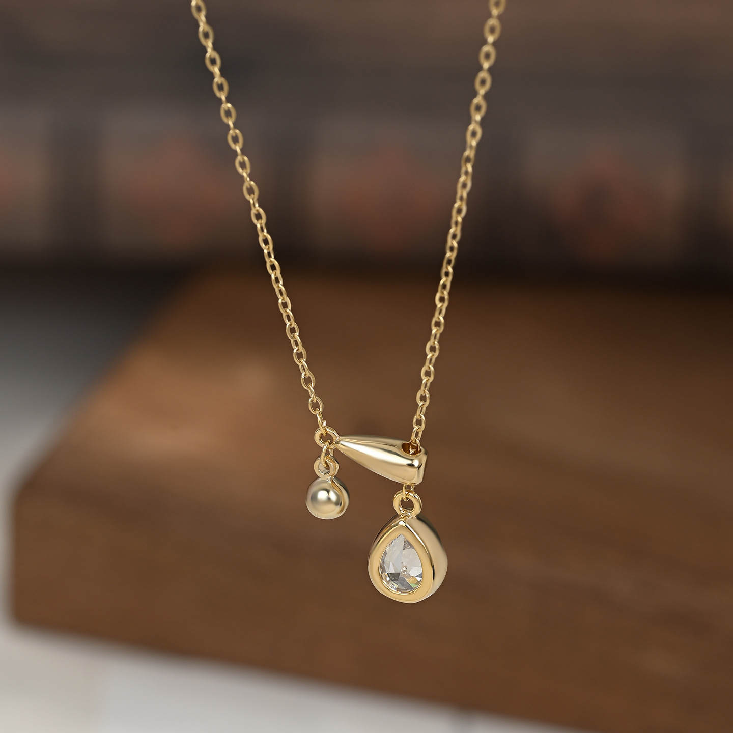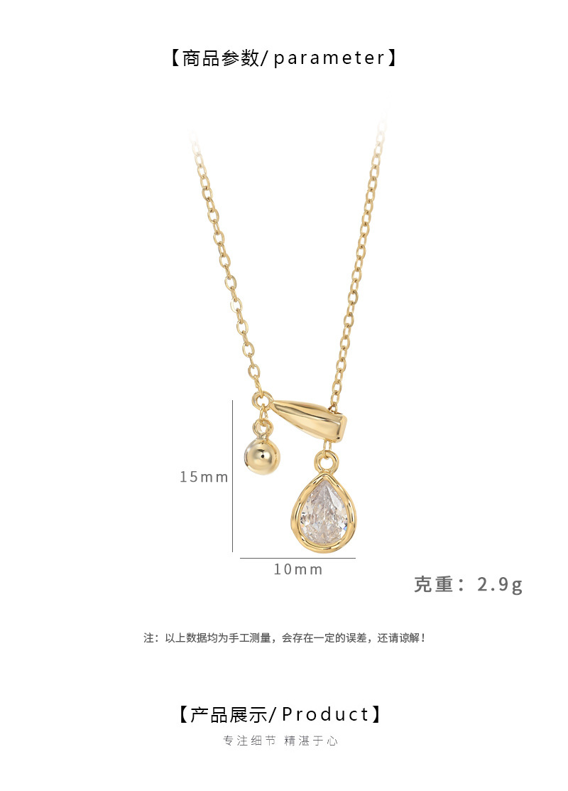 真金电镀镶锆石气质锁骨链女小众设计感水滴吊坠流苏项链简约颈链 English | 投诉
