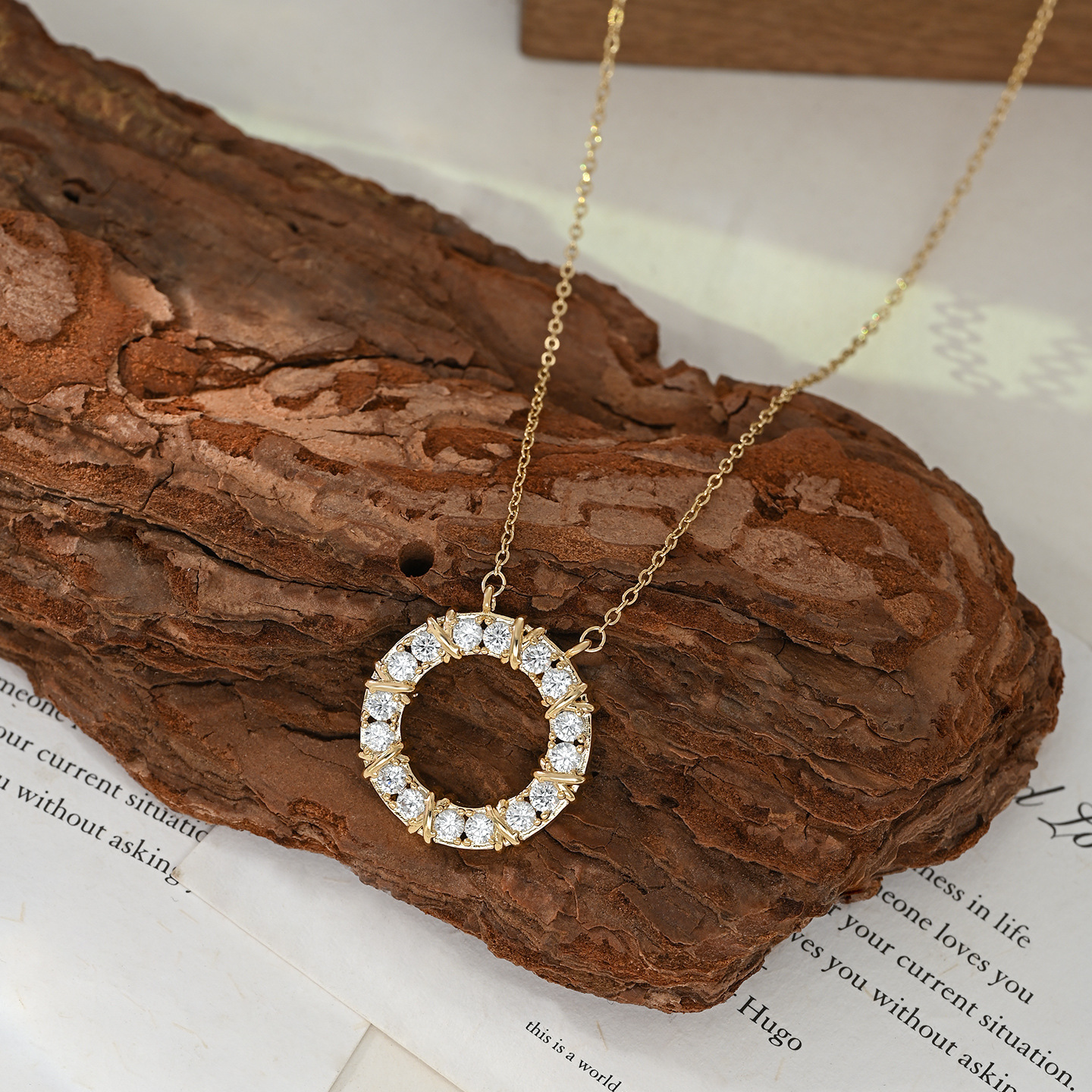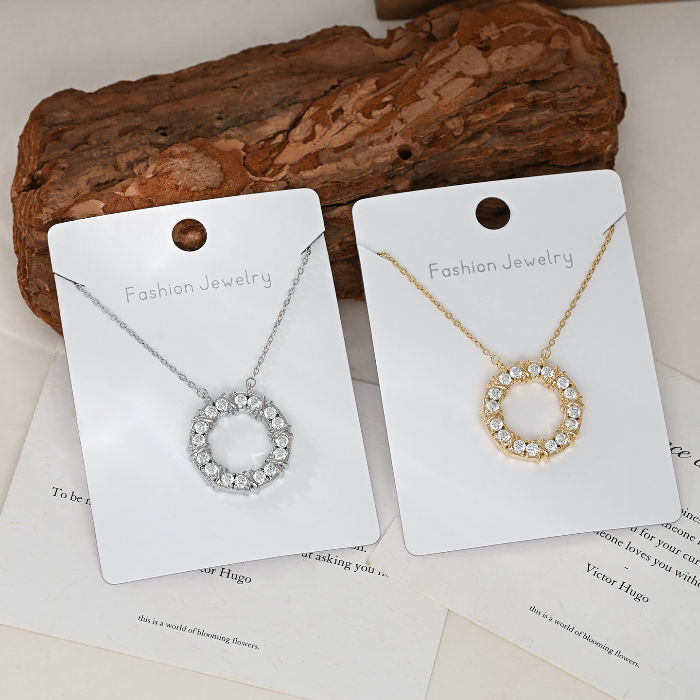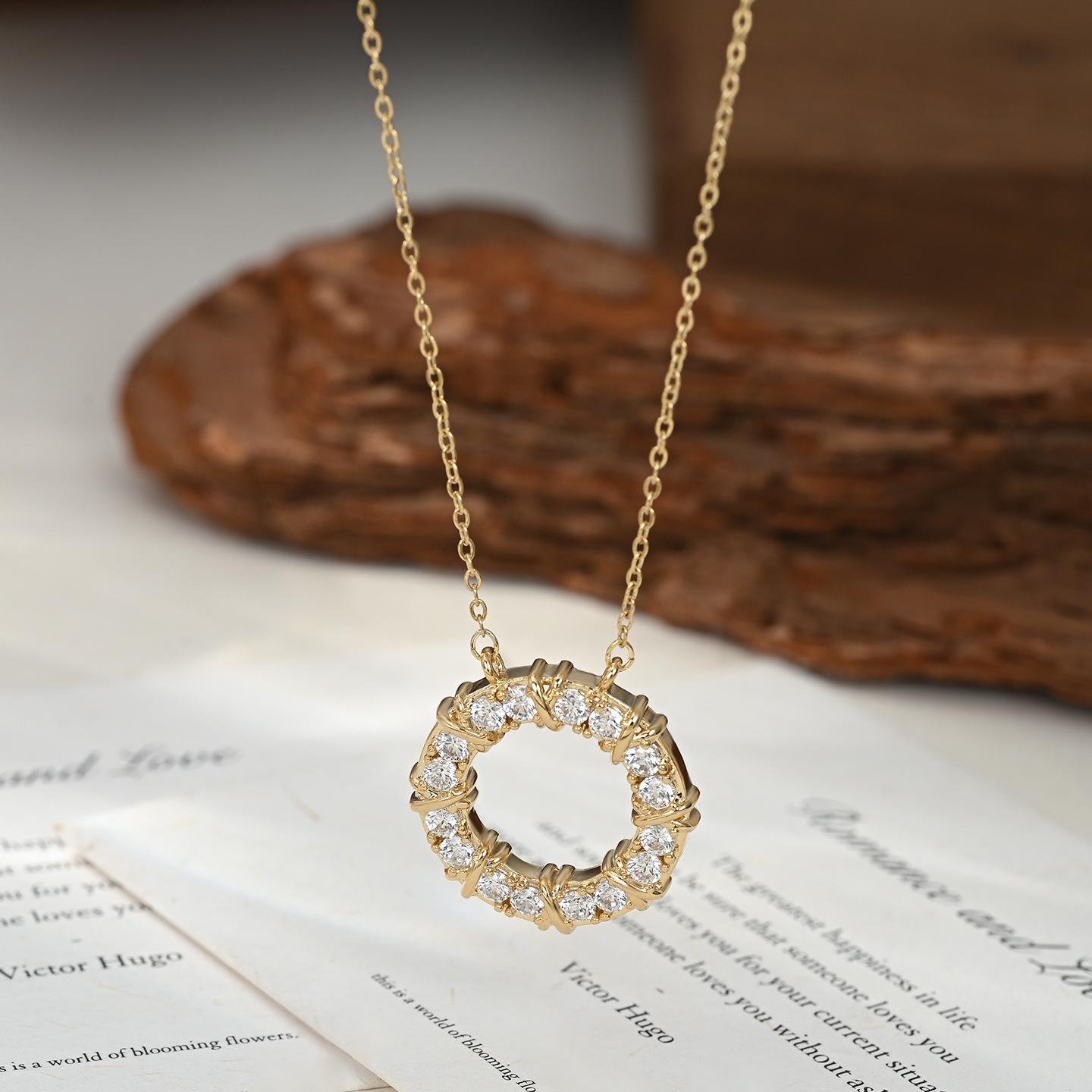 真金电镀微镶锆石气质锁骨链女小众设计感圆环项链通勤风百搭颈链 English | 投诉