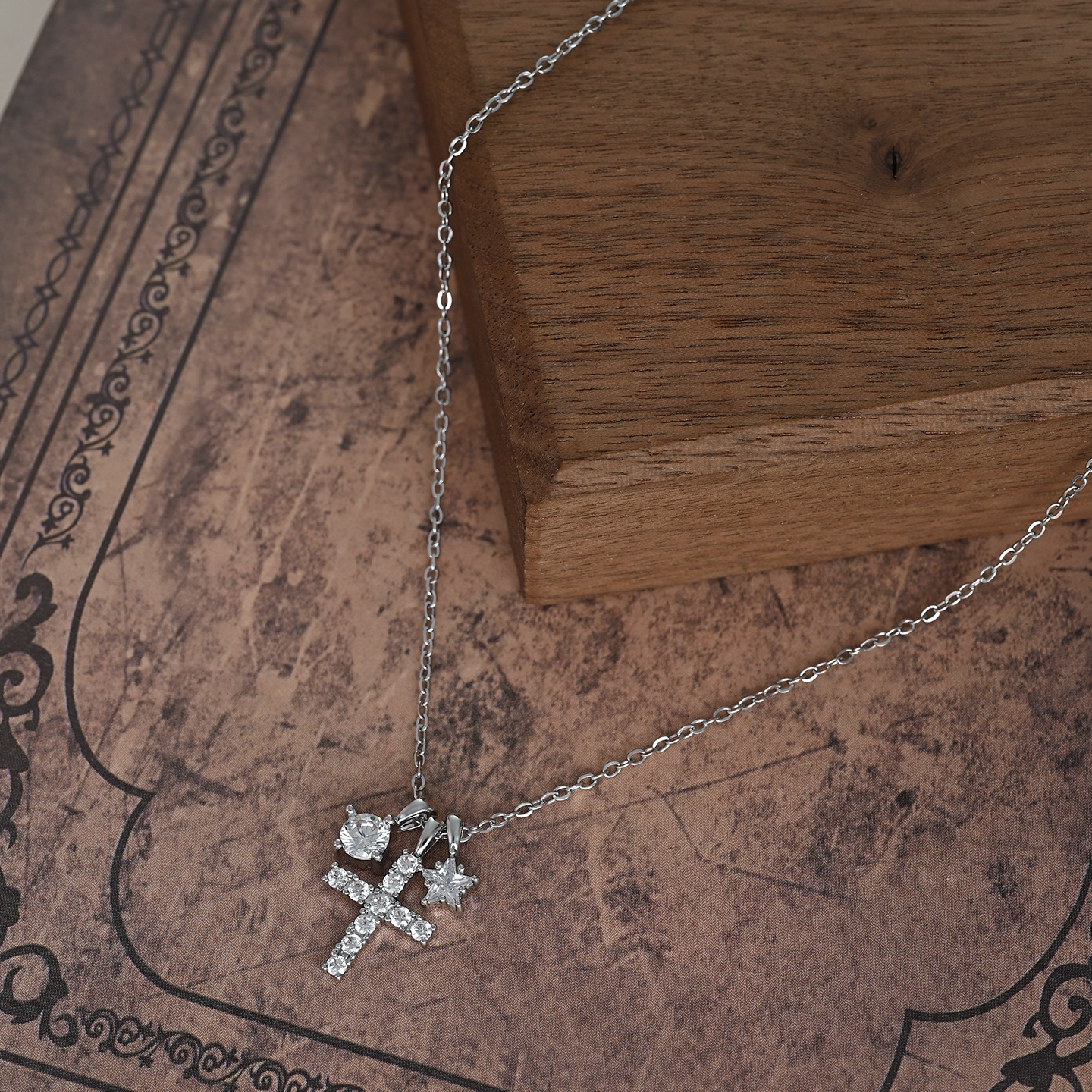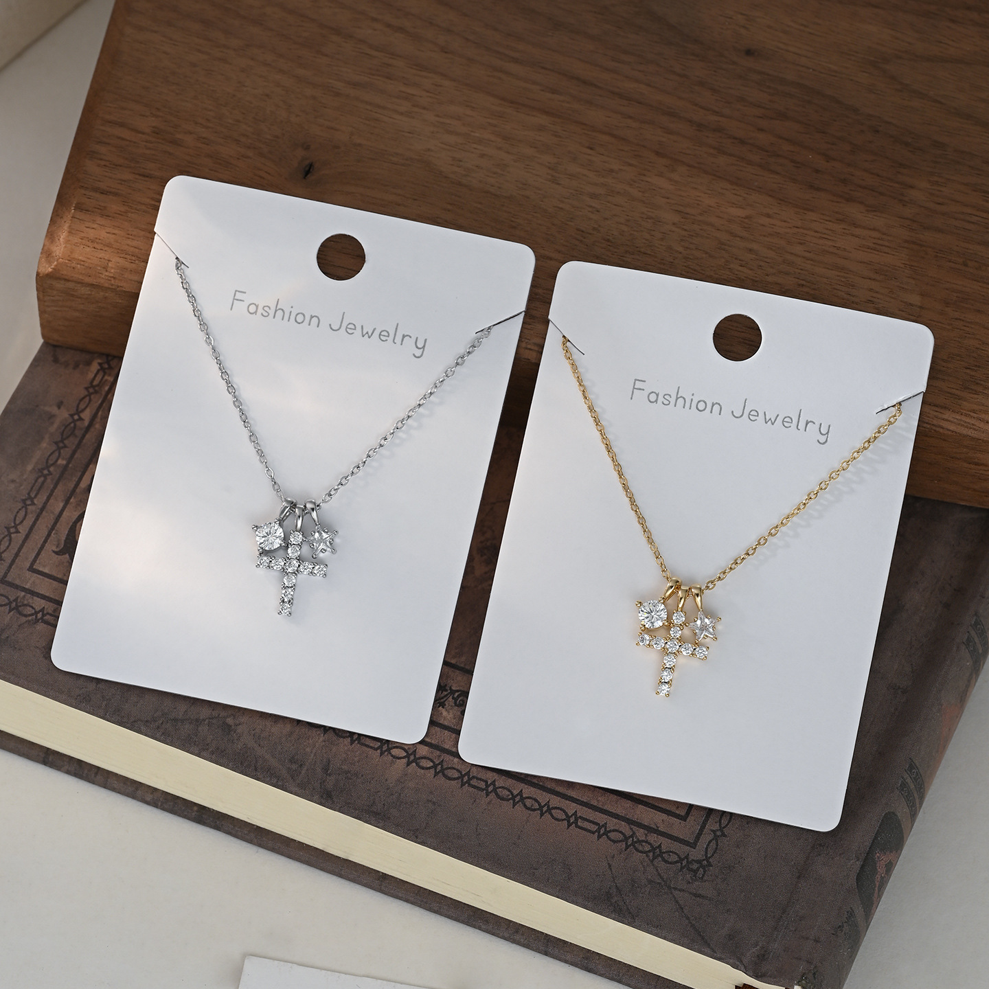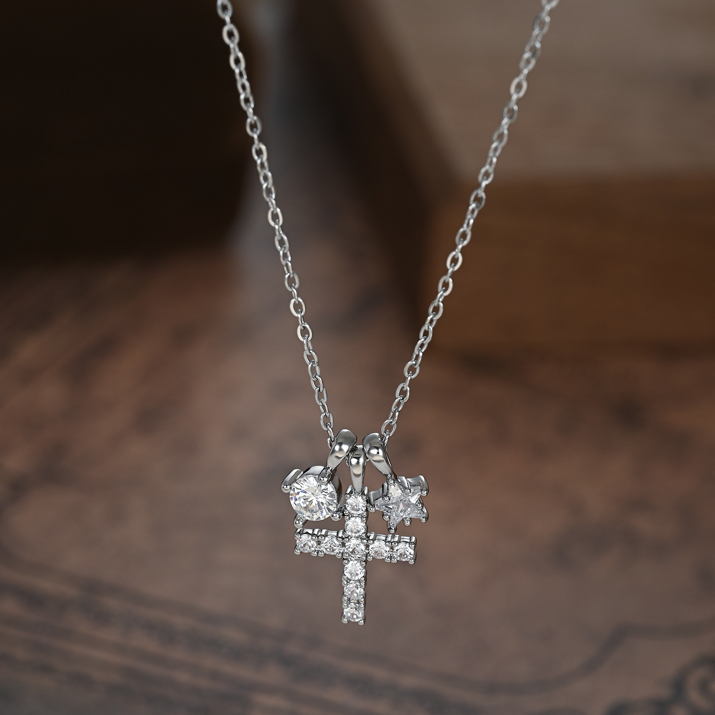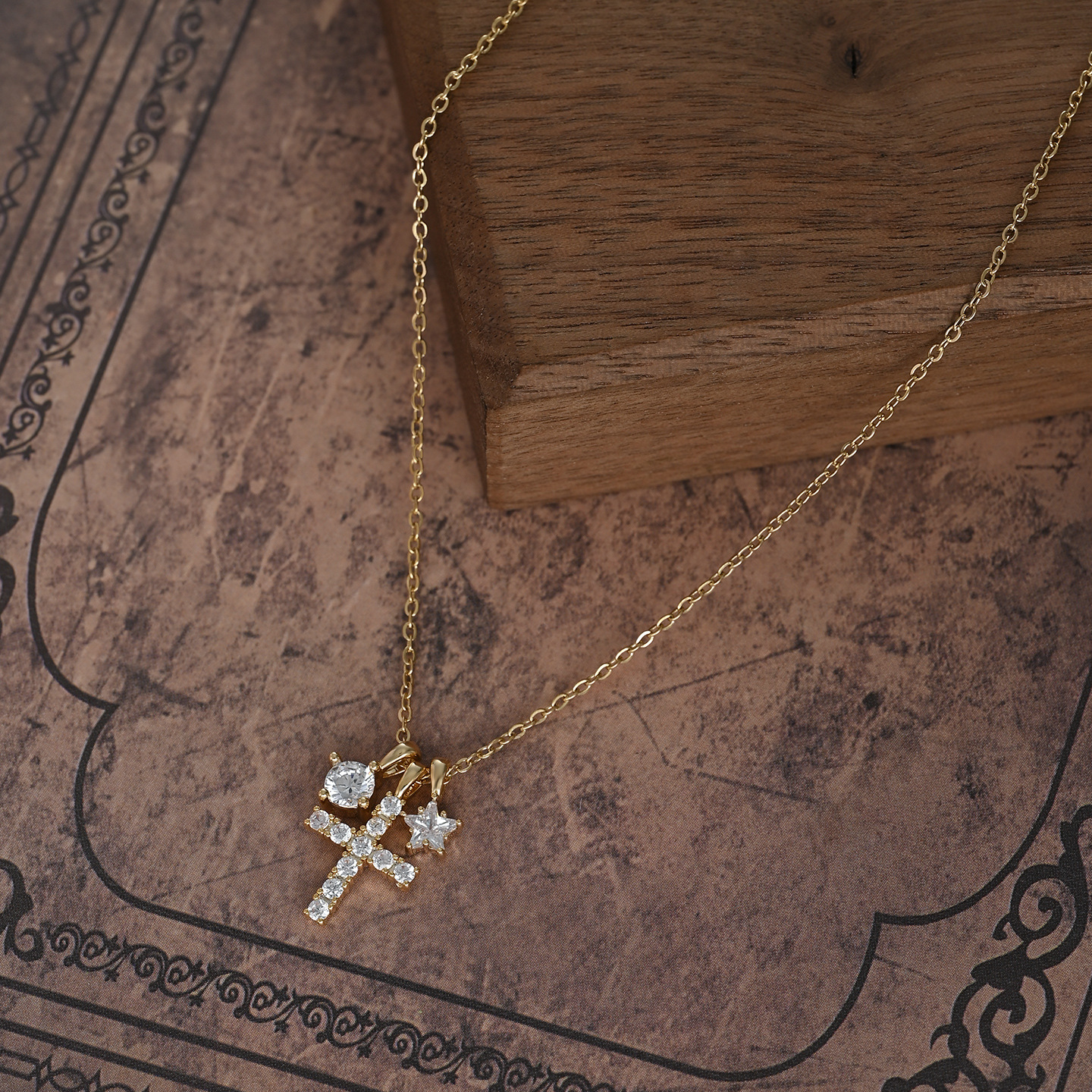 真金电镀微镶锆石气质锁骨链女小众设计感星星十字架项链精致颈链 English | 投诉