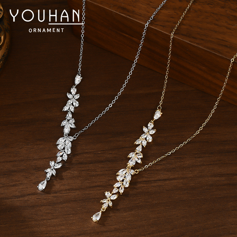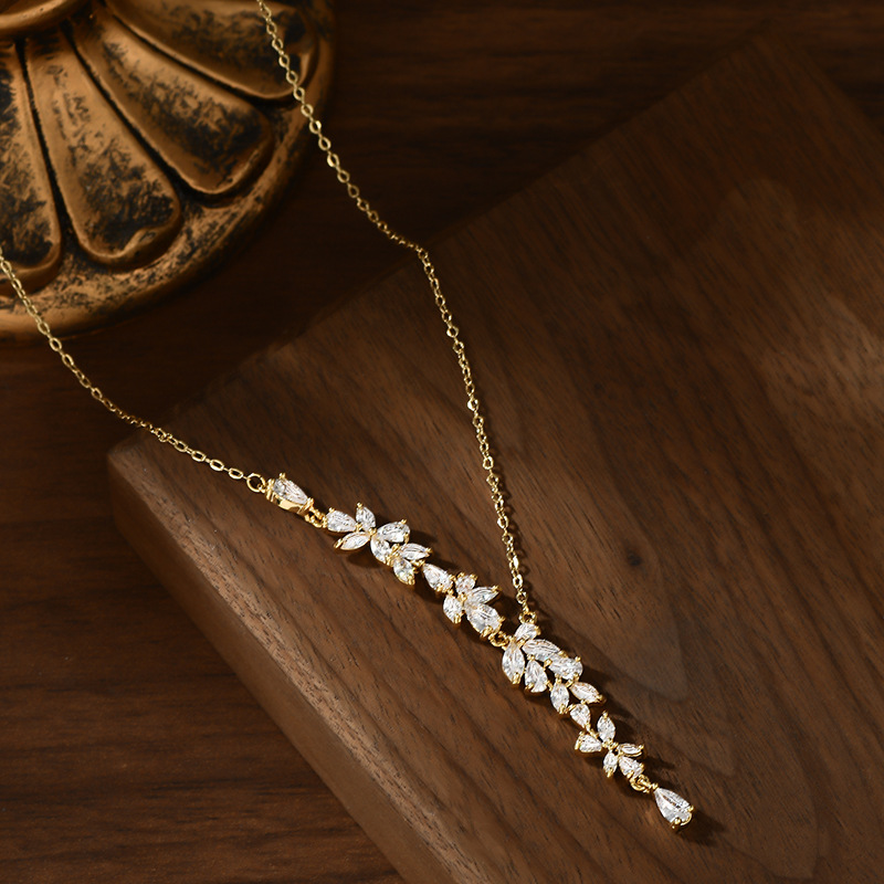 真金电镀微镶锆石气质锁骨链女小众设计高级感麦穗项链精致毛衣链 English | 投诉