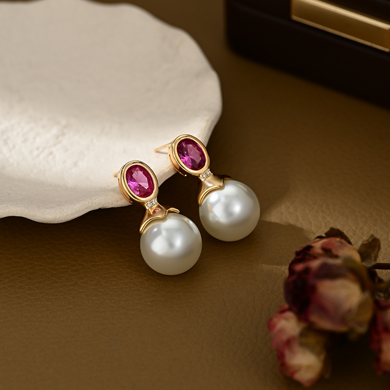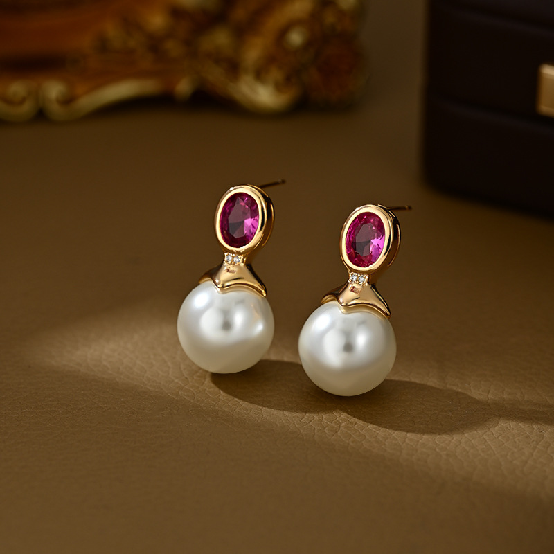 抖音直播热卖S925银针复古法式珍珠耳环女高级感网红耳饰百搭耳钉 English | 投诉