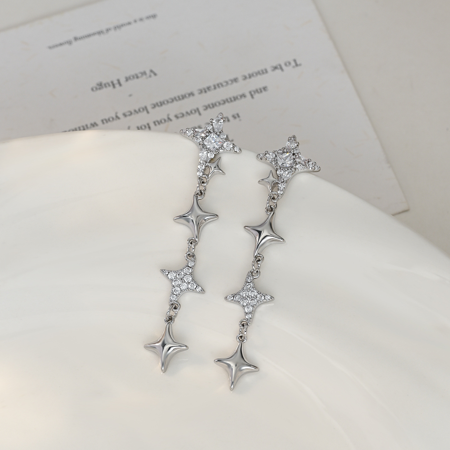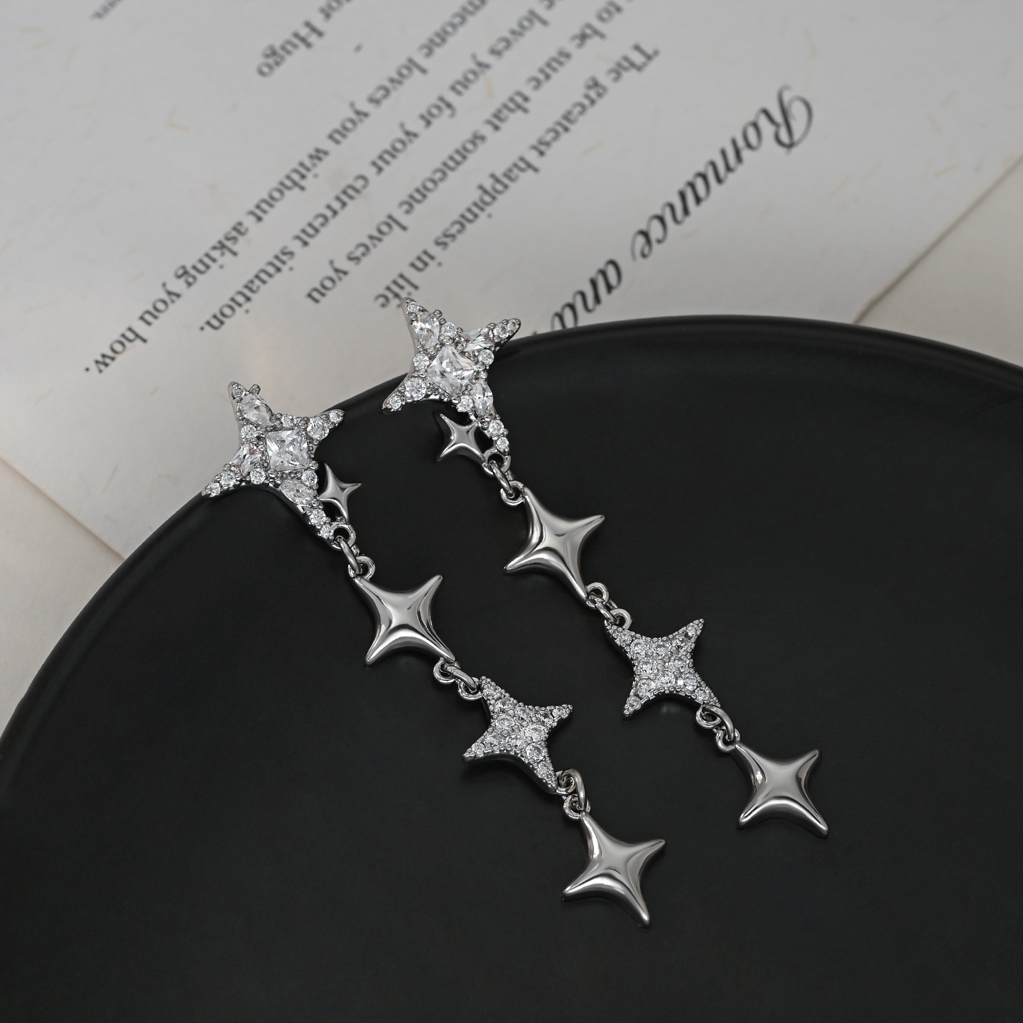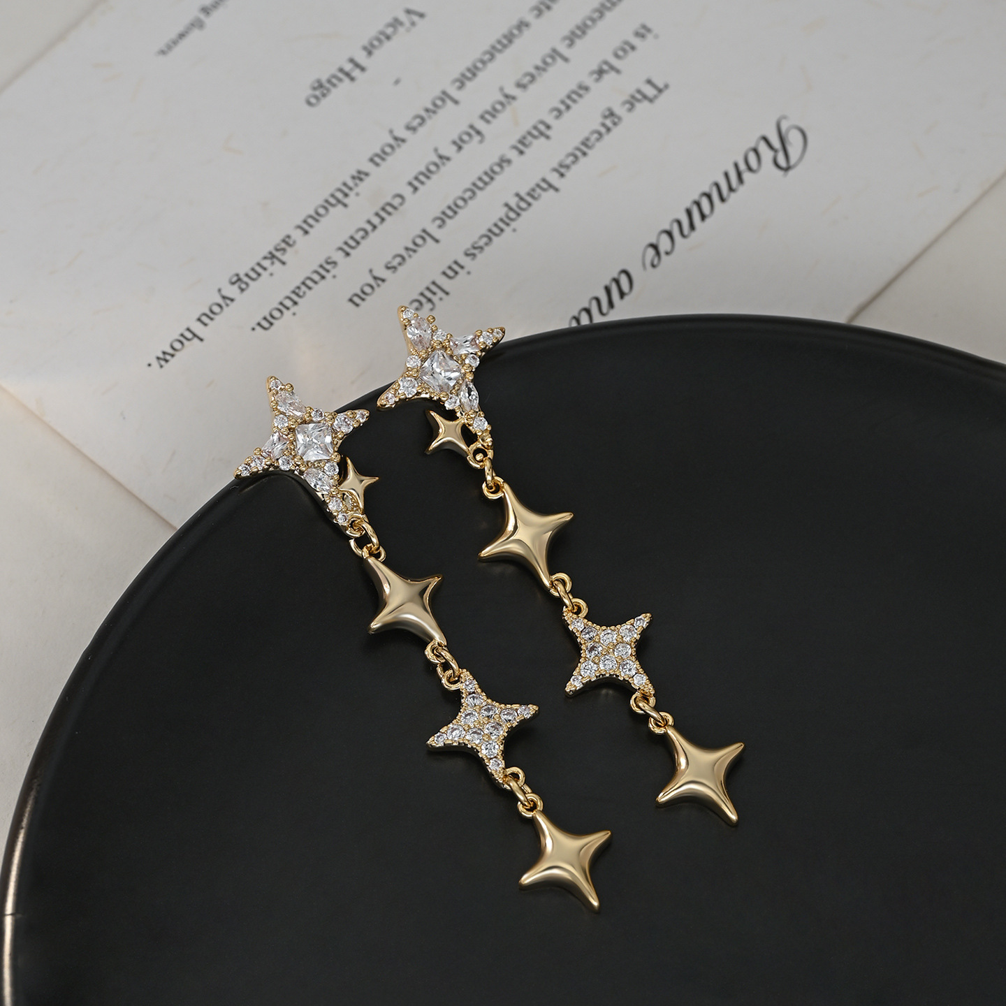 韩版爆款四芒星锆石耳钉女新品百搭耳环耳饰小众设计高级感饰品女 English | 投诉