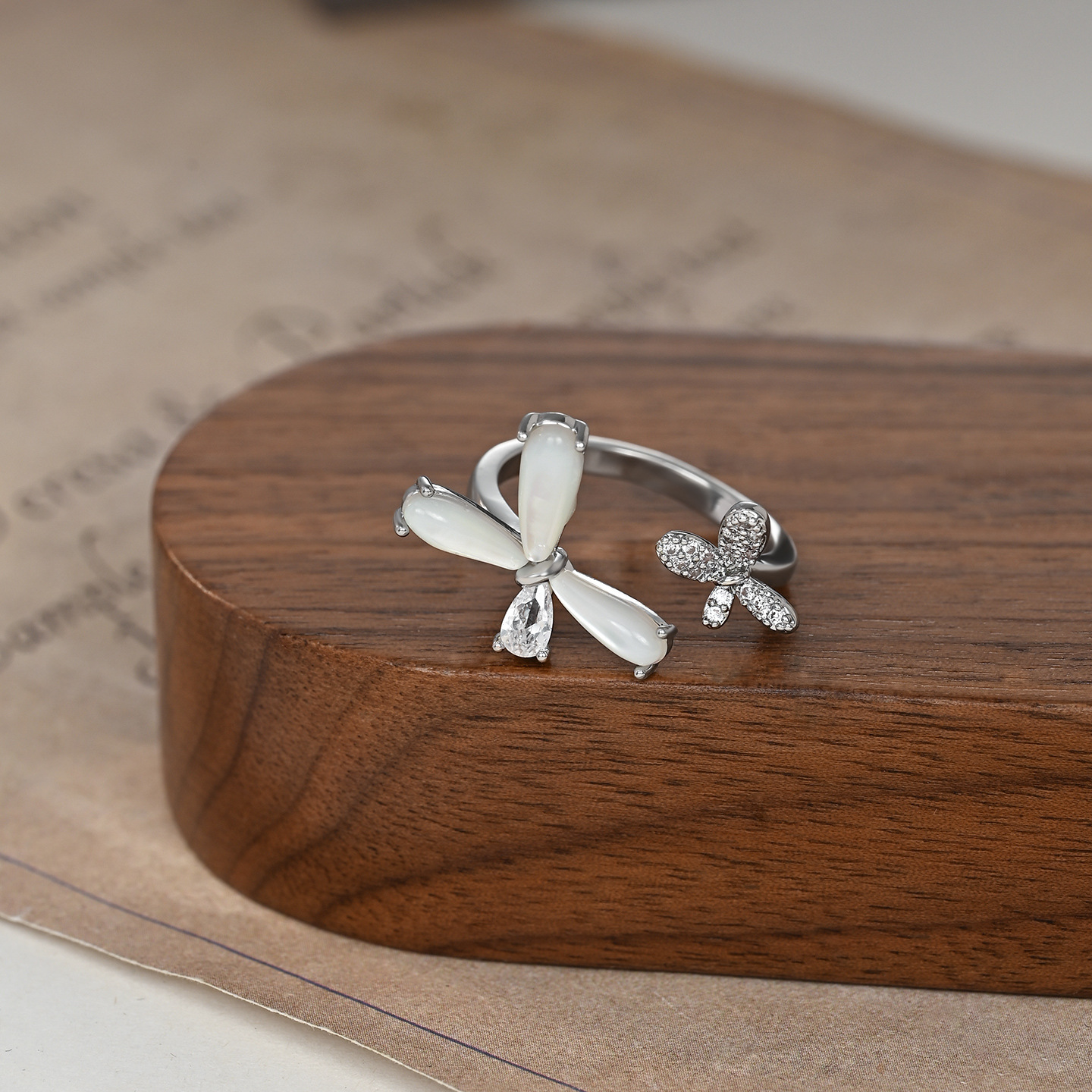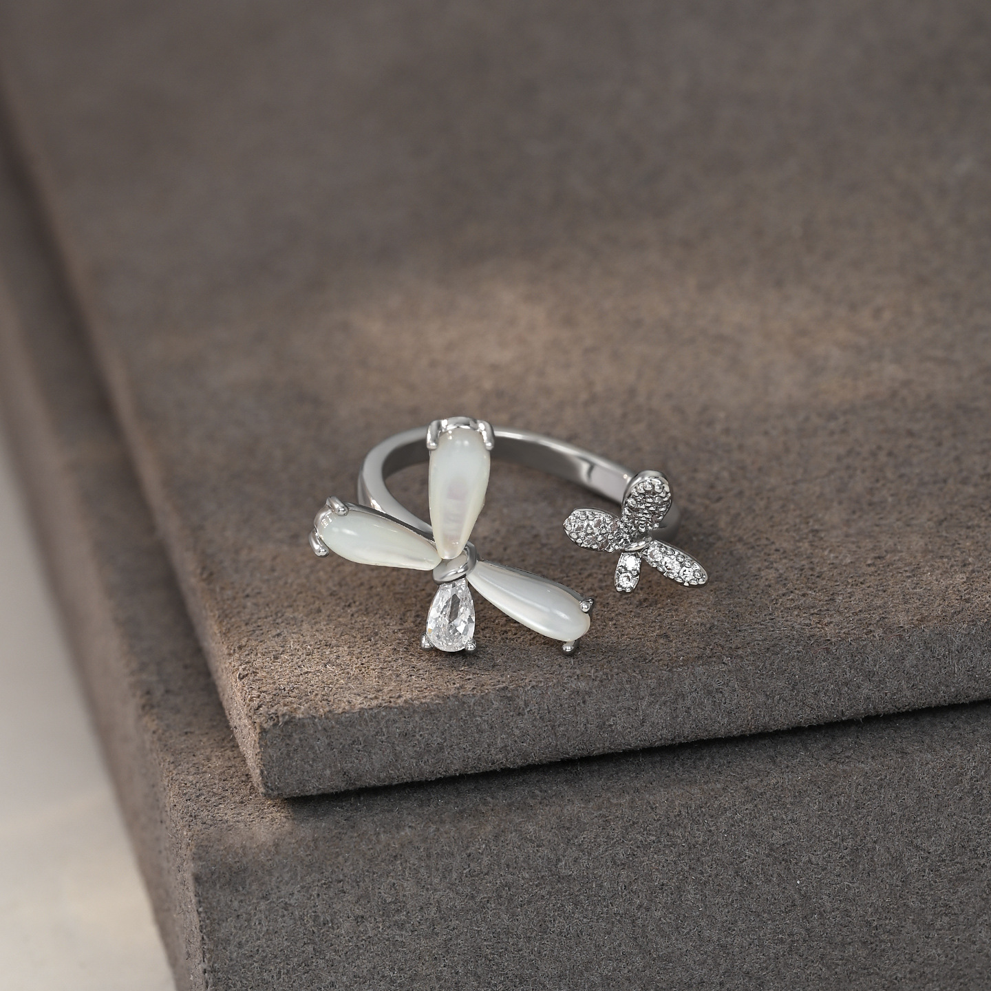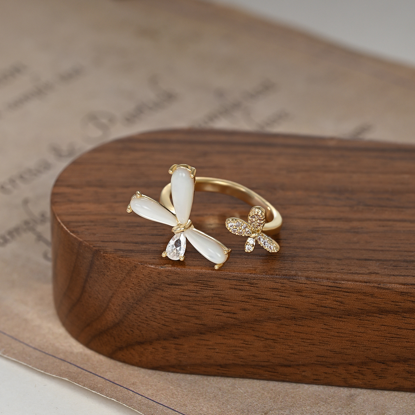 时尚简约蝴蝶开口戒指原创高级感猫眼石昆虫食指戒新款可调节指环 English | 投诉