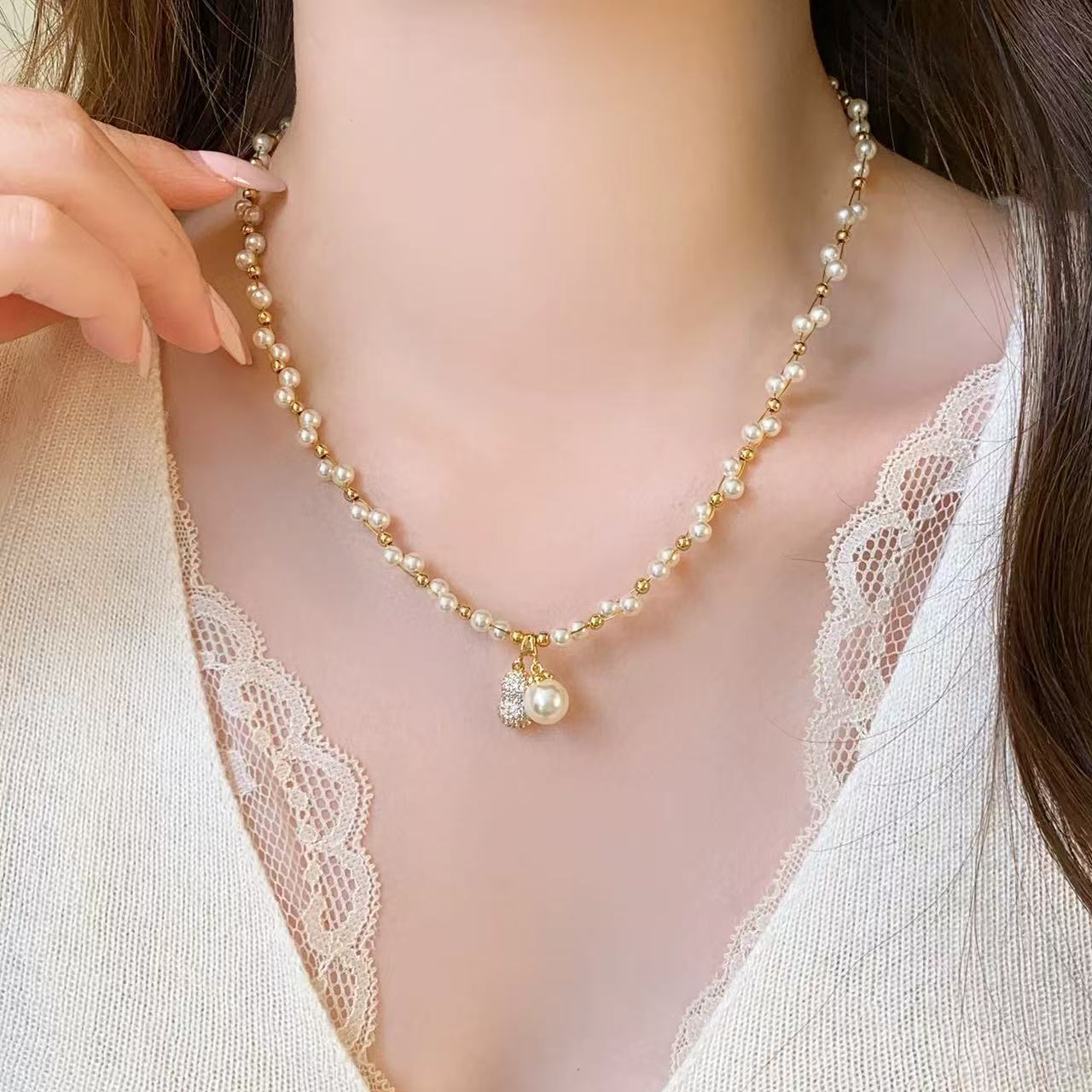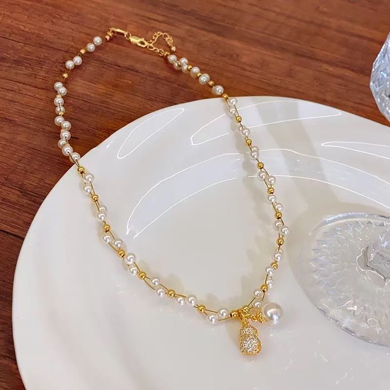 秋冬新款复古法式珍珠项链女高级感锆石葫芦锁骨链精致网红风颈链 English | 投诉