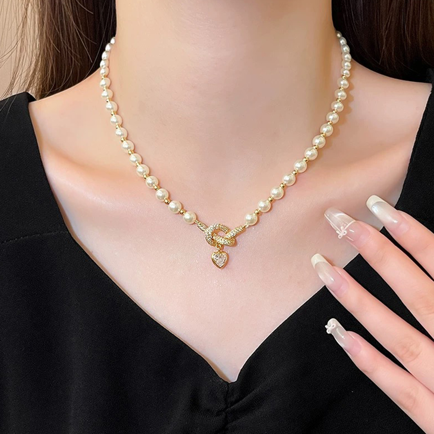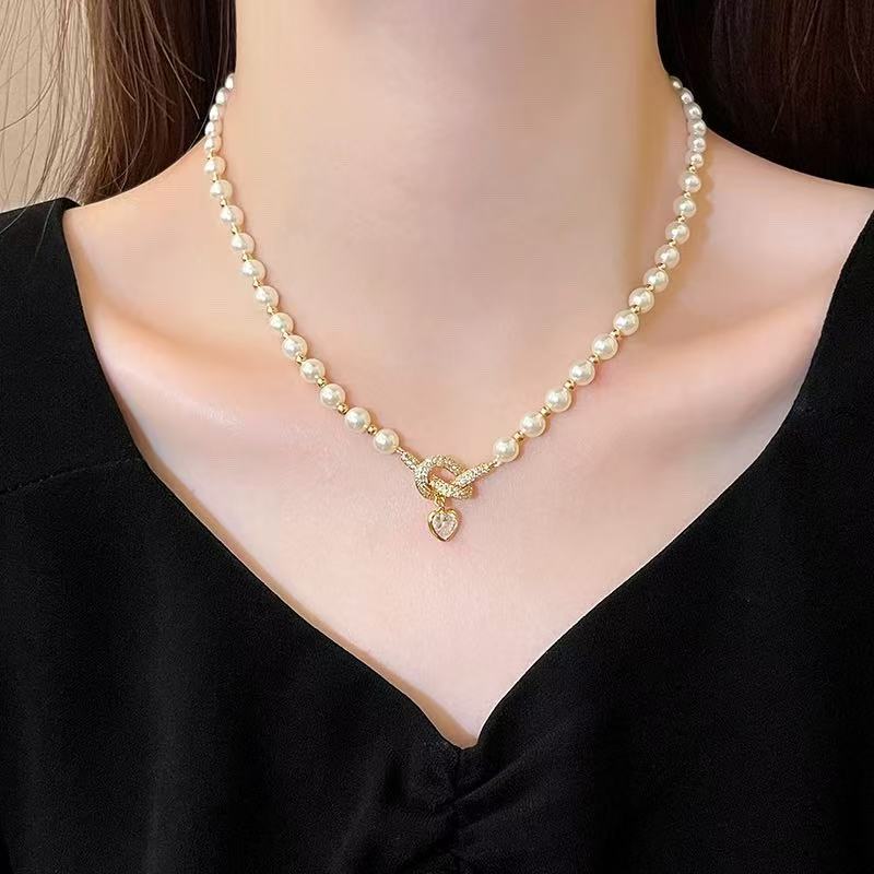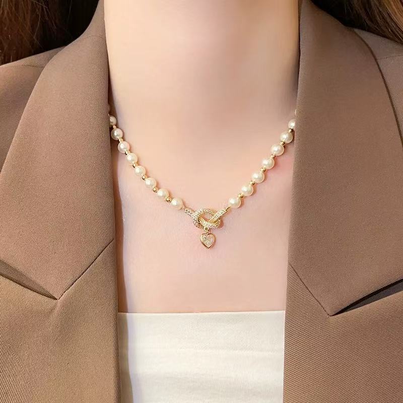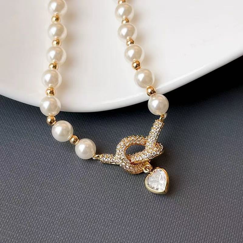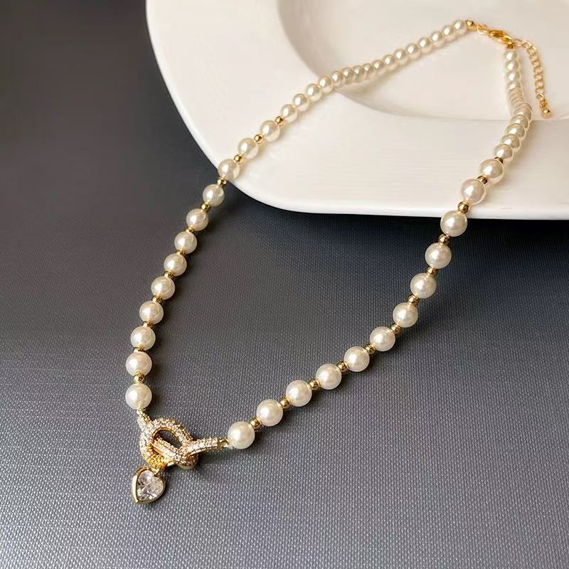 秋冬新款复古法式珍珠项链女小众设计蝴蝶结爱心锁骨链百搭毛衣链 English | 投诉