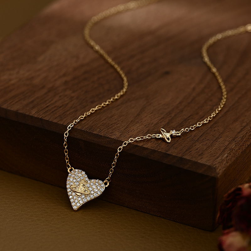 真金电镀微镶锆石气质锁骨链女高级感ins风项链精致爱心颈链批发 English | 投诉