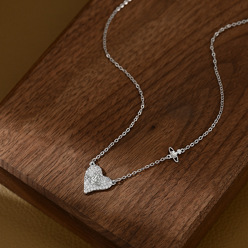 真金电镀微镶锆石气质锁骨链女高级感ins风项链精致爱心颈链批发