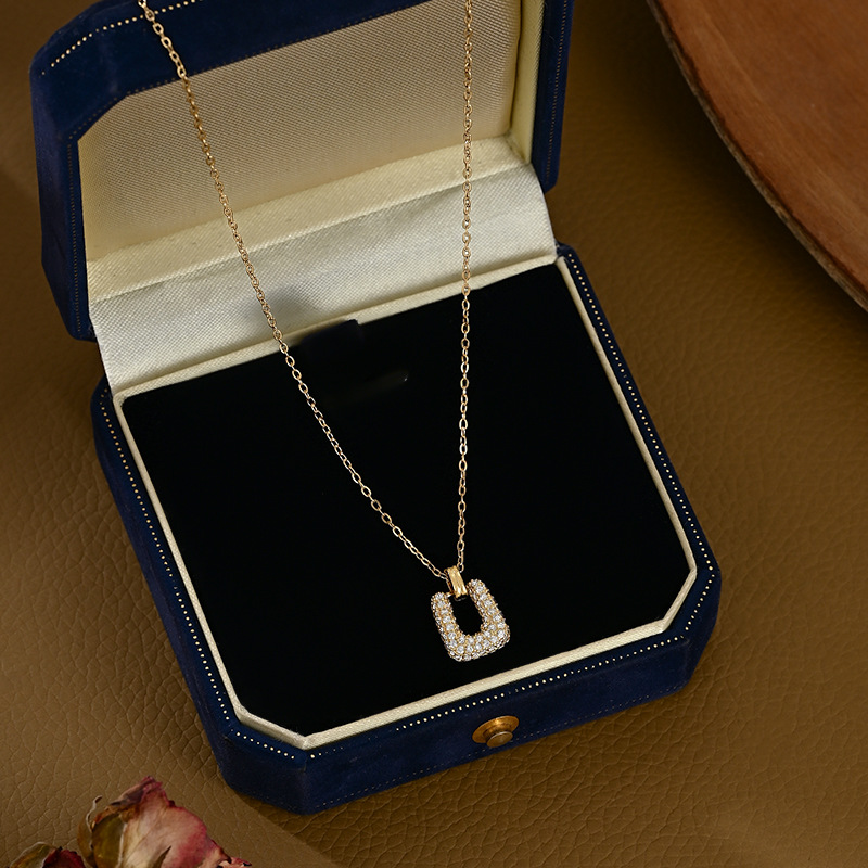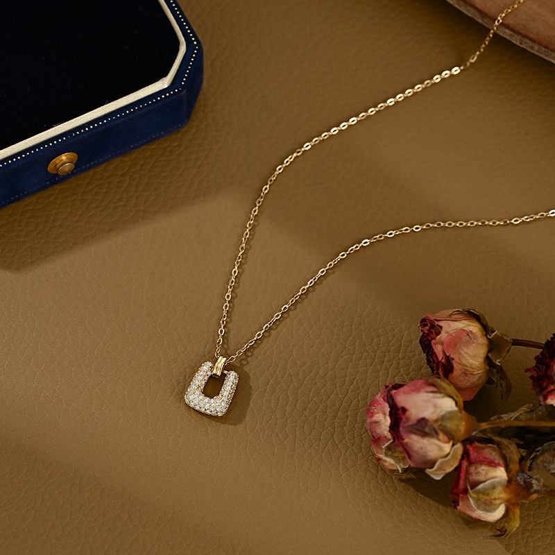 真金电镀微镶锆石气质锁骨链小众设计感几何方糖项链精致百搭颈链 English | 投诉