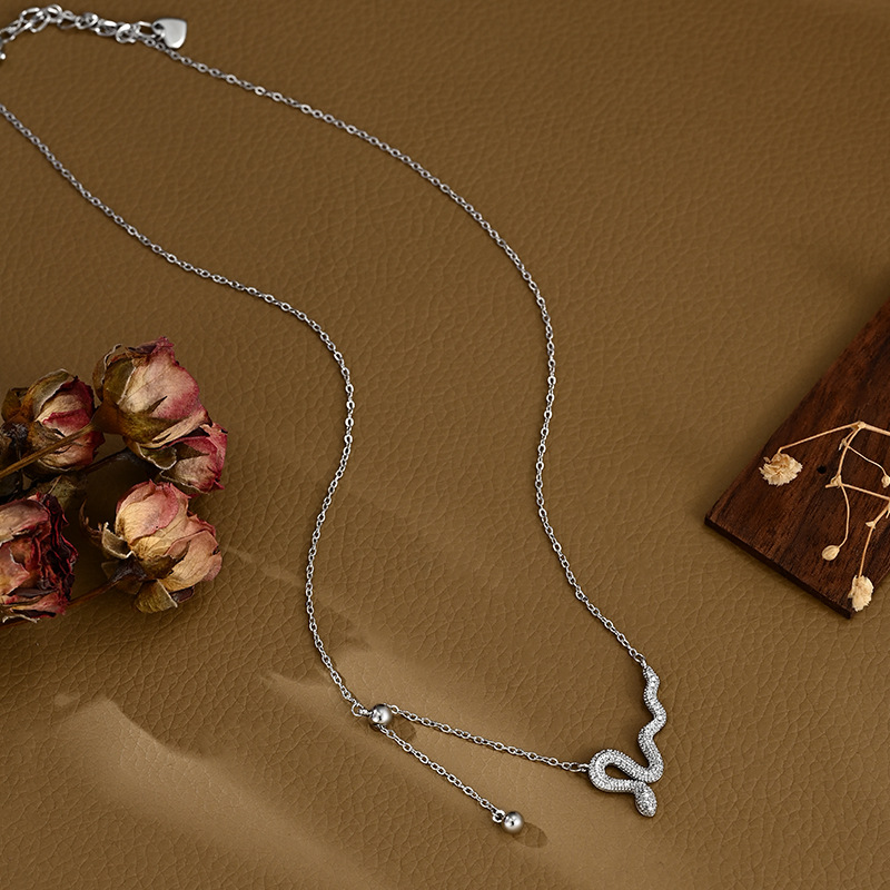 真金电镀微镶锆石气质锁骨链高级感2025年新款蛇项链精致百搭颈链