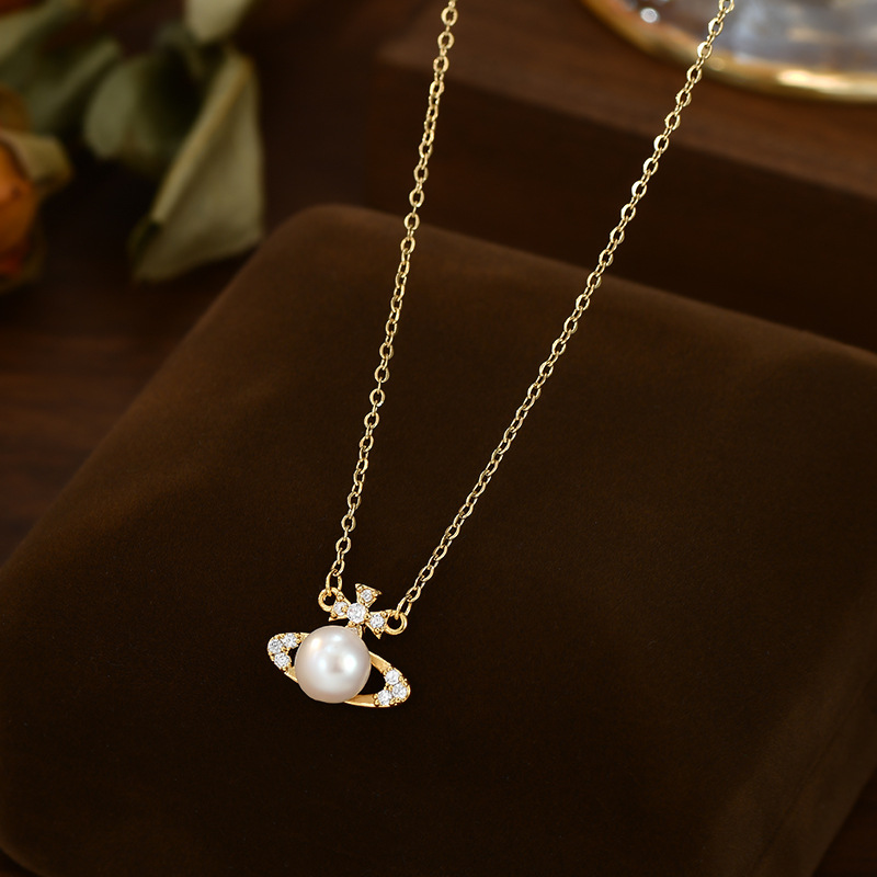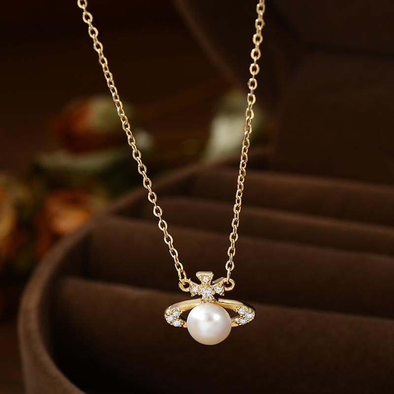 2025年新款镶锆石气质锁骨链女高级感复古法式珍珠项链精致毛衣链 English | 投诉