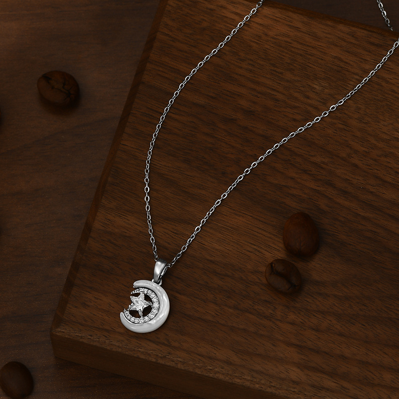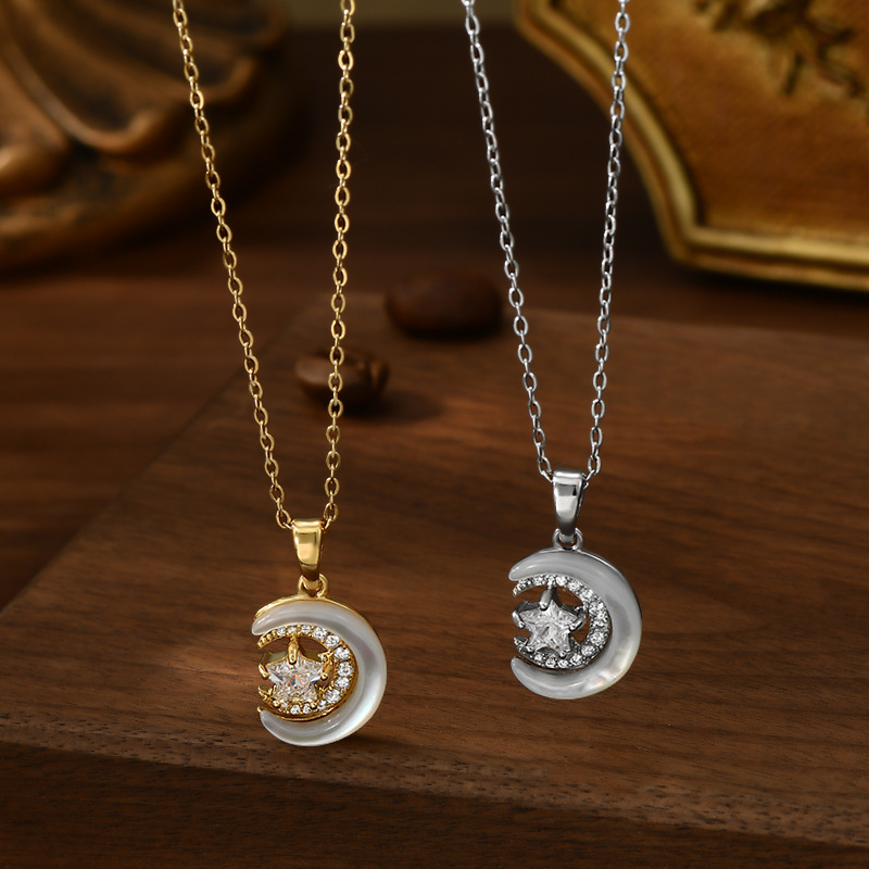 真金电镀镶锆石气质锁骨链女小众设计感天然贝母星星月亮项链批发 English | 投诉