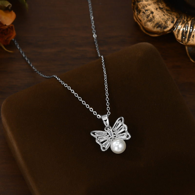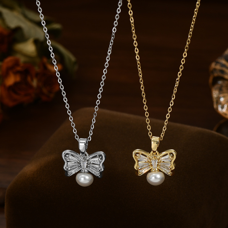 真金电镀微镶锆石气质锁骨链女小众设计感蝴蝶结项链精致珍珠颈链 English | 投诉