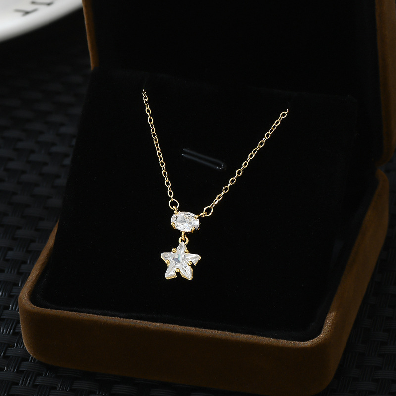 真金电镀微镶锆石气质锁骨链女2024年新款小众设计感星星项链批发