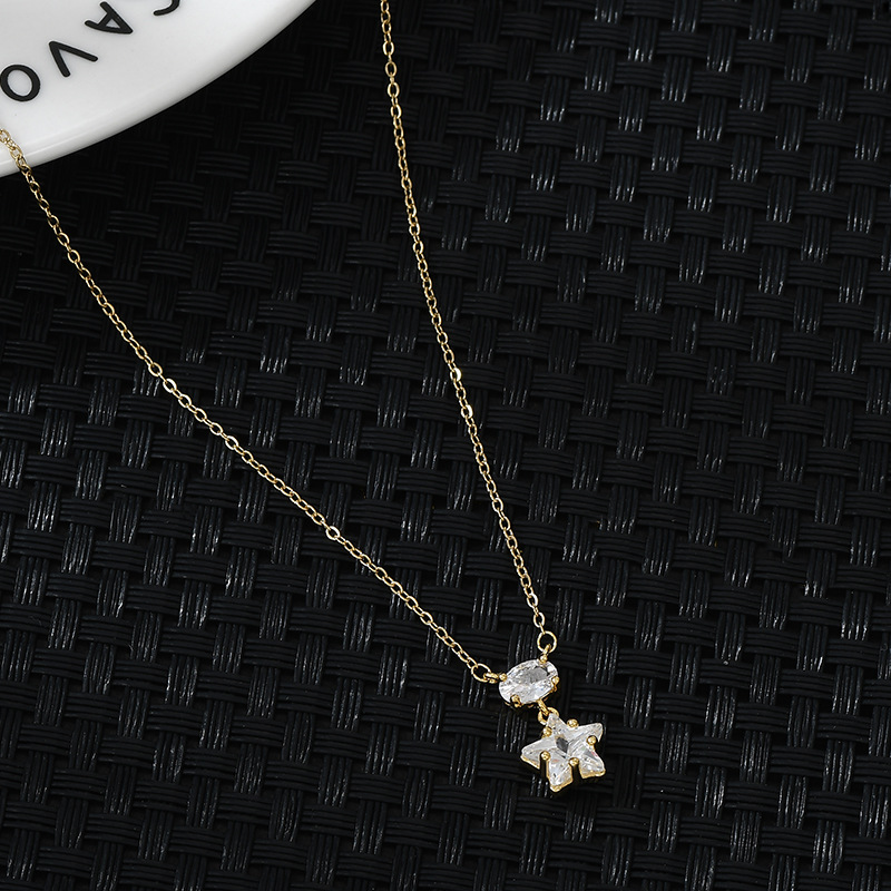 真金电镀微镶锆石气质锁骨链女2024年新款小众设计感星星项链批发 English | 投诉