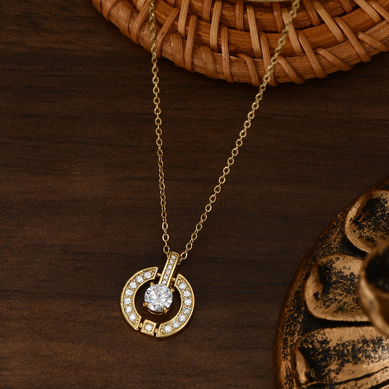 真金电镀微镶锆石气质锁骨链小众设计感镂空圆圈项链精致简约颈链 English | 投诉
