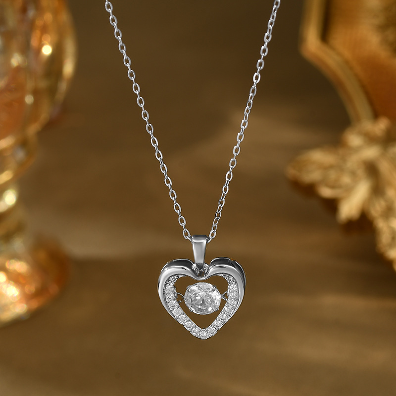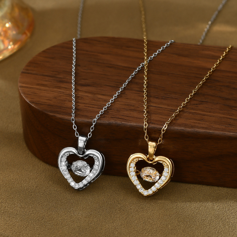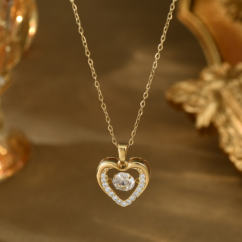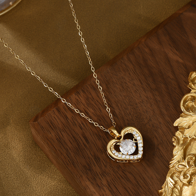真金电镀微镶锆石气质锁骨链女高级感灵动项链精致镂空爱心毛衣链 English | 投诉