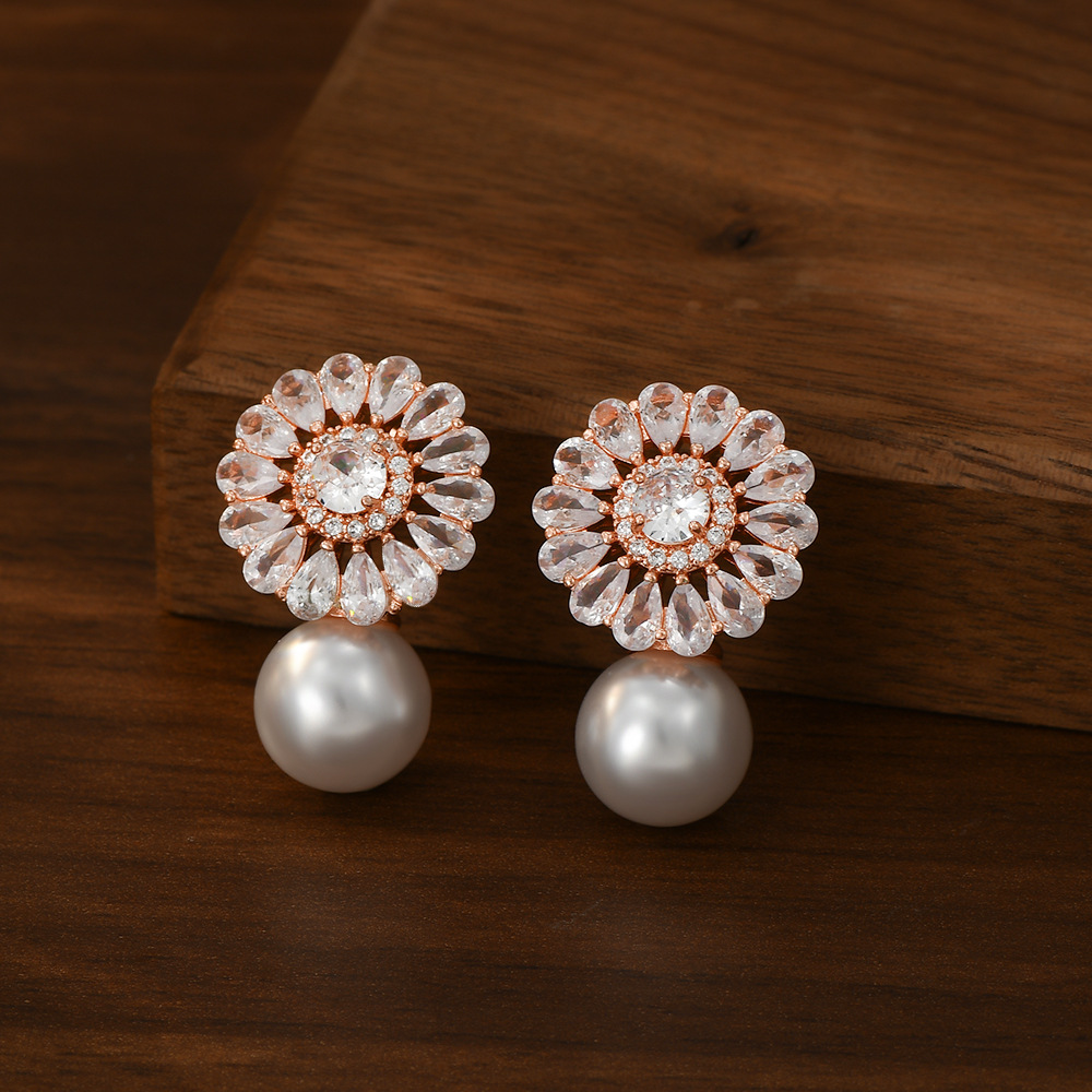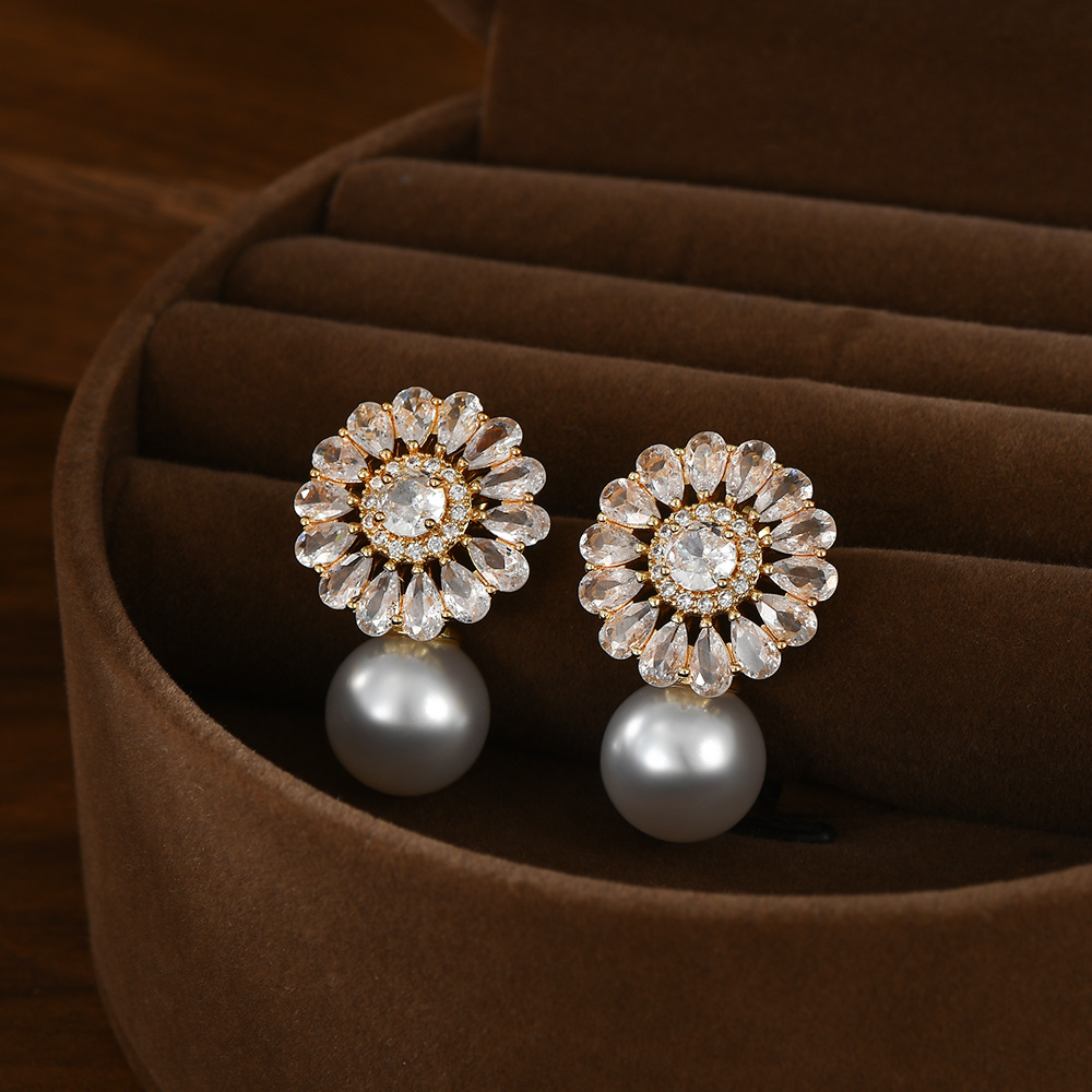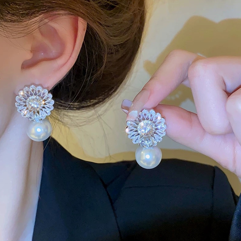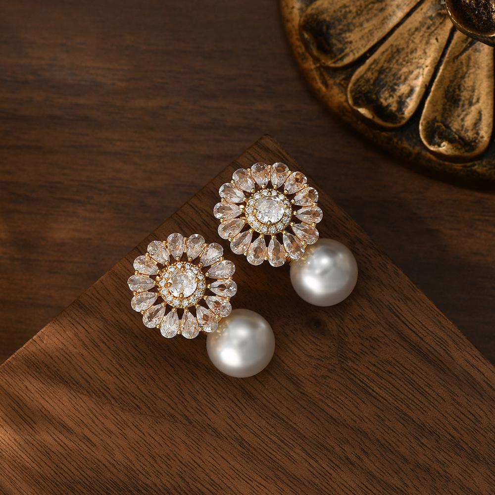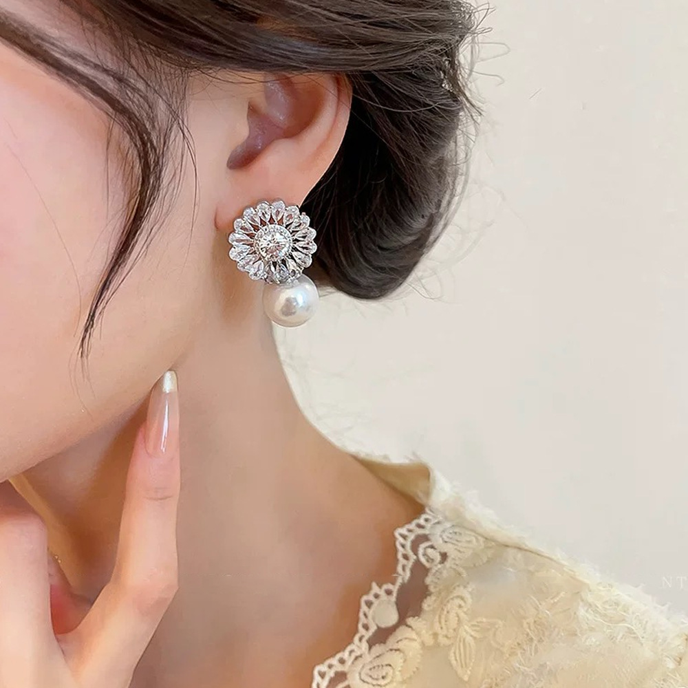 秋冬新款复古法式珍珠耳环女小众设计感锆石花瓣耳饰精致轻奢耳钉 English | 投诉