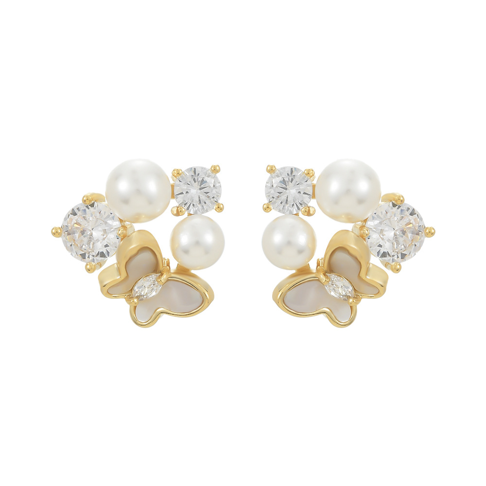 秋季新款S925银针小众设计感复古法式珍珠耳钉高级感贝壳蝴蝶耳环 English | 投诉