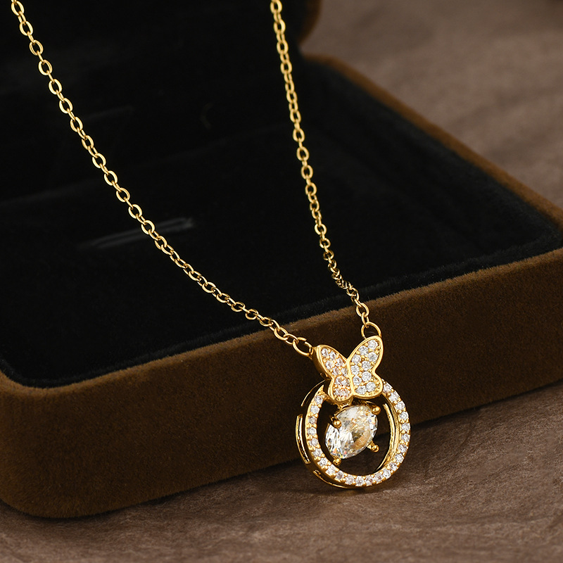 真金电镀微镶满钻镂空灵动蝴蝶锁骨链项链女韩版时尚轻奢气质项饰 English | 投诉