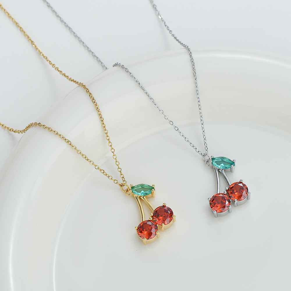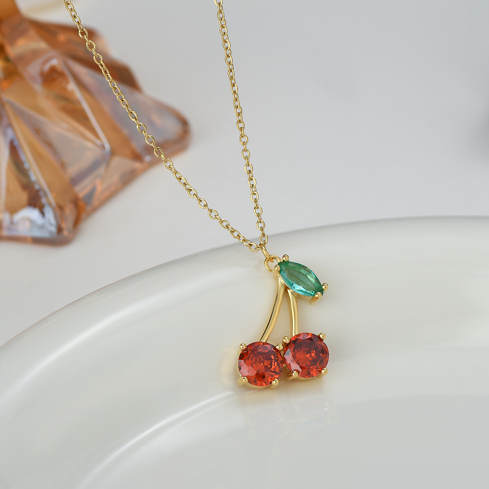 真金电镀微镶锆石气质锁骨链女2024年新款樱桃吊坠项链ins风颈链 English | 投诉