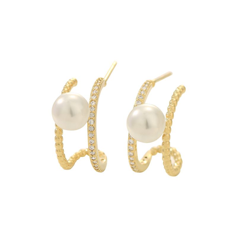 S925银针韩国时尚设计感珍珠耳钉女2024新款几何C形耳饰精致耳环 English | 投诉