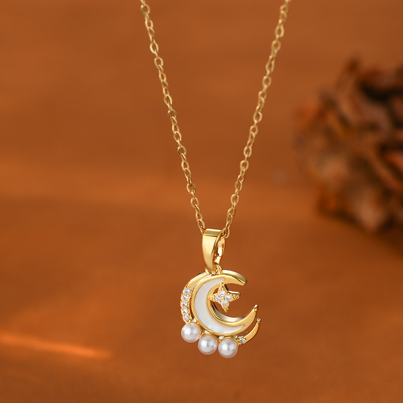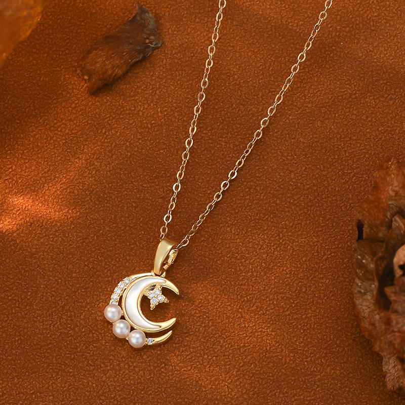 真金电镀镶锆石气质气质锁骨链女韩国高级感天然贝母月亮珍珠项链 English | 投诉
