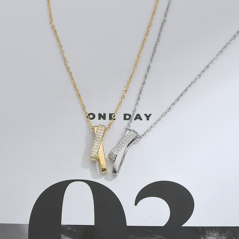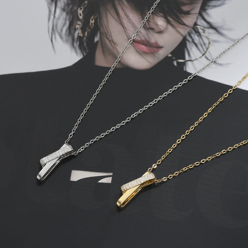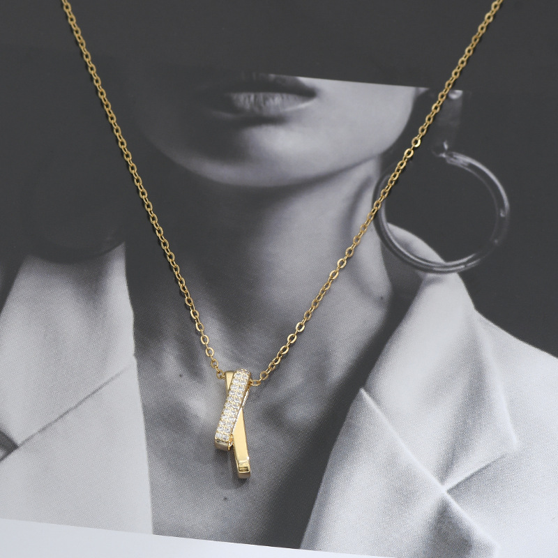 真金电镀微镶锆石气质锁骨链小众设计感交叉吊坠项链精致百搭颈链 English | 投诉