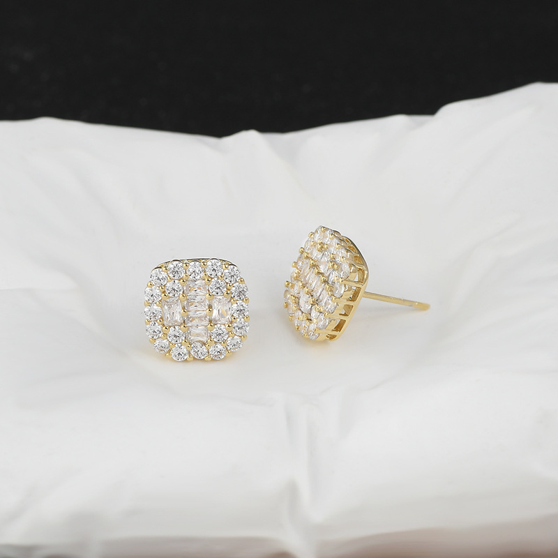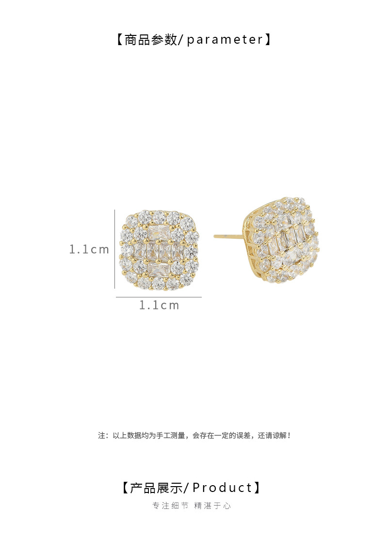 S925银针方形微镶满钻超闪耳钉女韩版时尚新款简约设计耳饰潮批发 English | 投诉