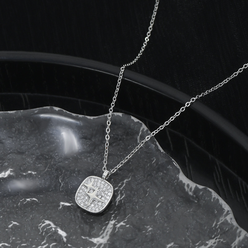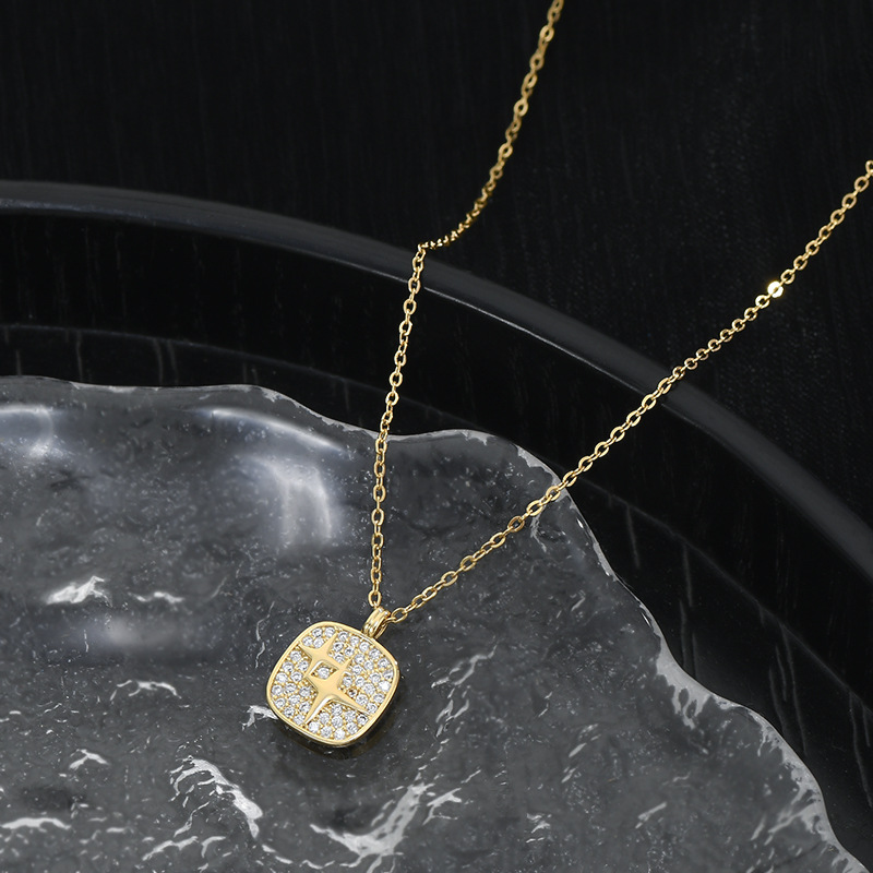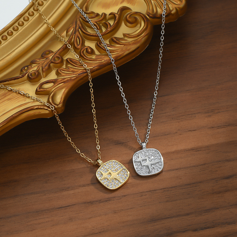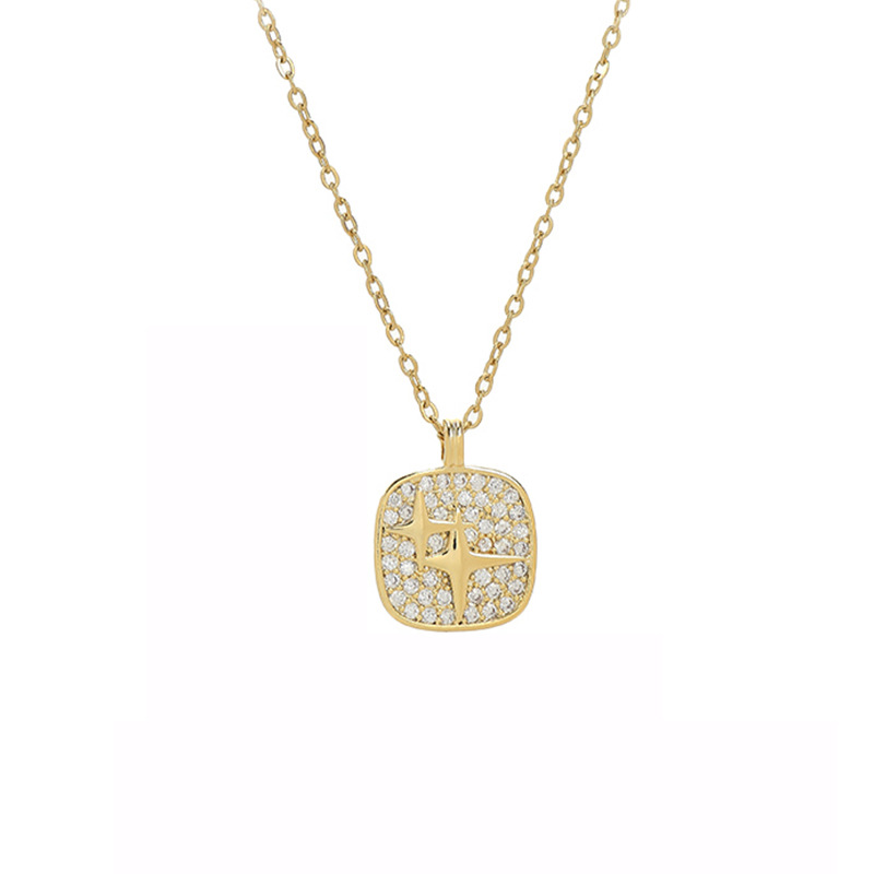 真金电镀微镶锆石气质锁骨链女小众设计感满钻方糖项链四芒星颈链 English | 投诉