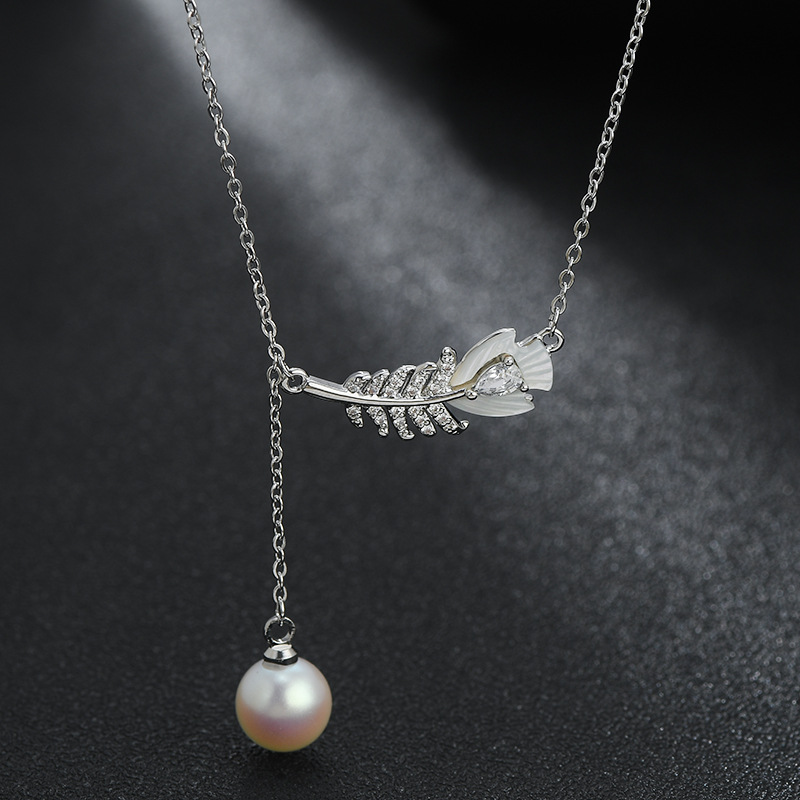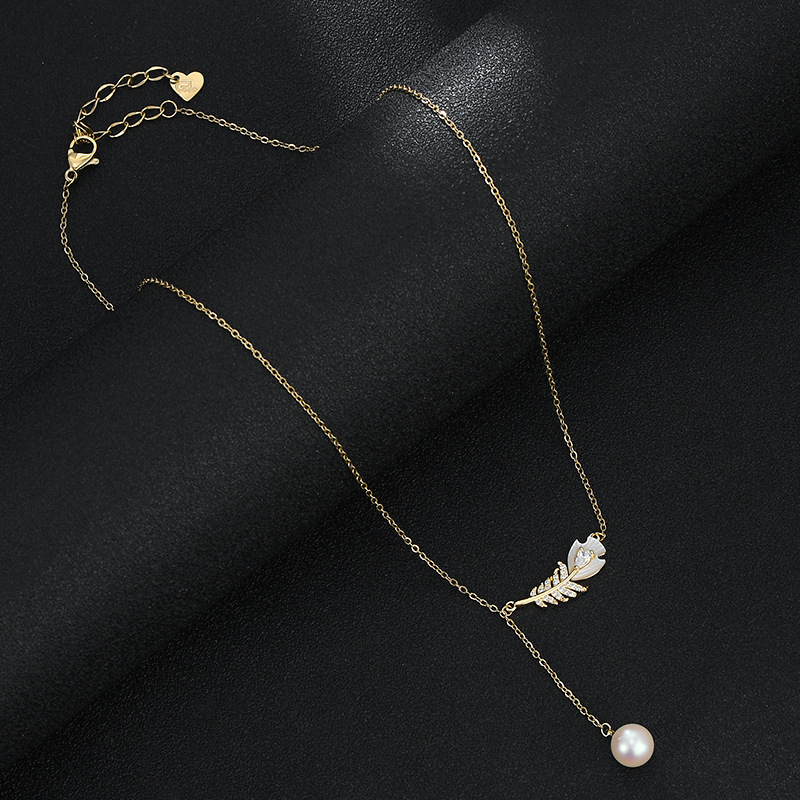 真金电镀微镶锆石气质锁骨链女高级感贝壳羽毛项链通勤风流苏颈链 English | 投诉