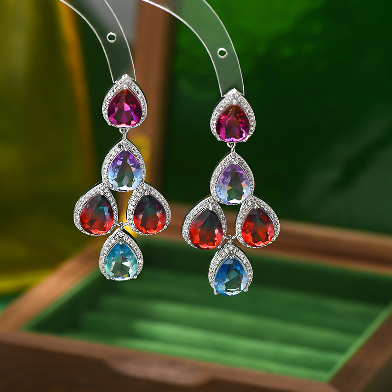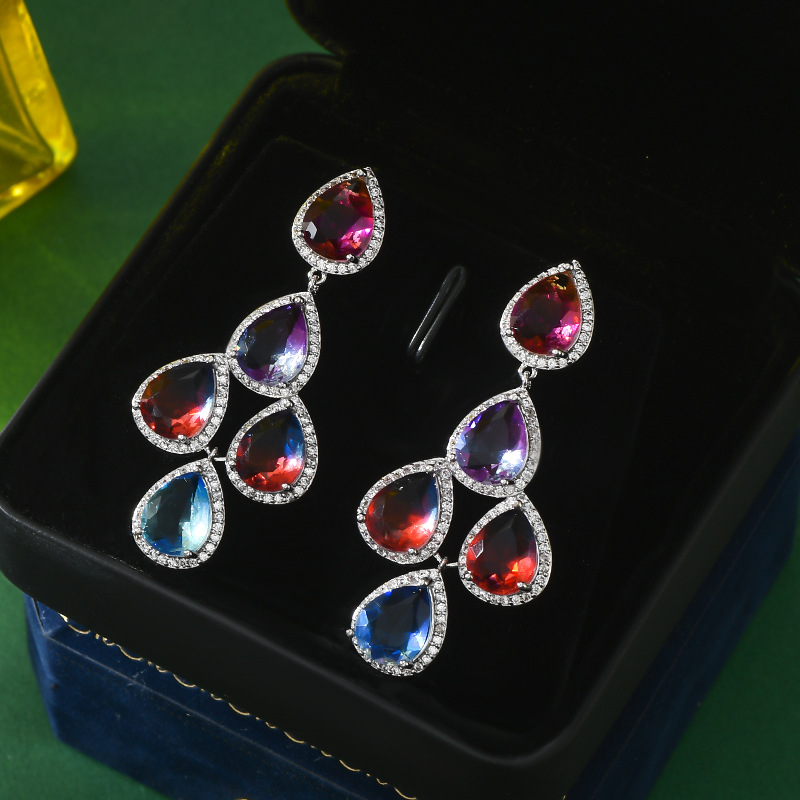 重工微镶彩色锆石轻奢耳环女S925银针高级感水滴耳饰品欧美风耳钉 English | 投诉