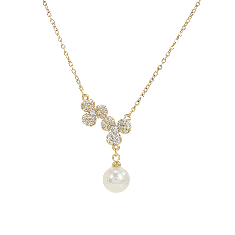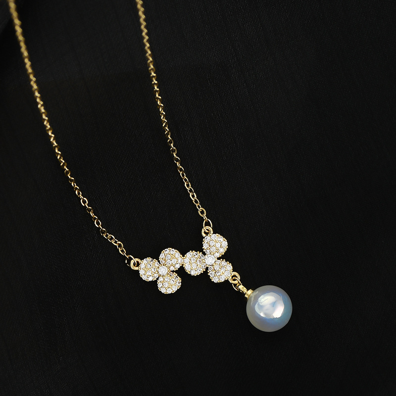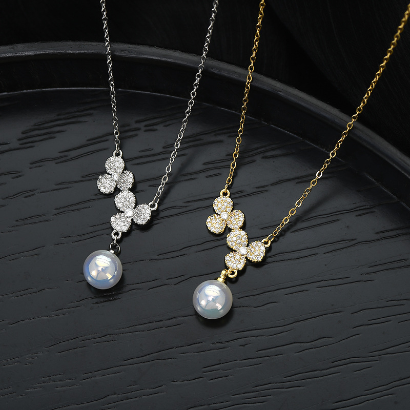 秋冬新款镶锆石气质锁骨链女小众设计感满钻花瓣项链简约珍珠颈链 English | 投诉