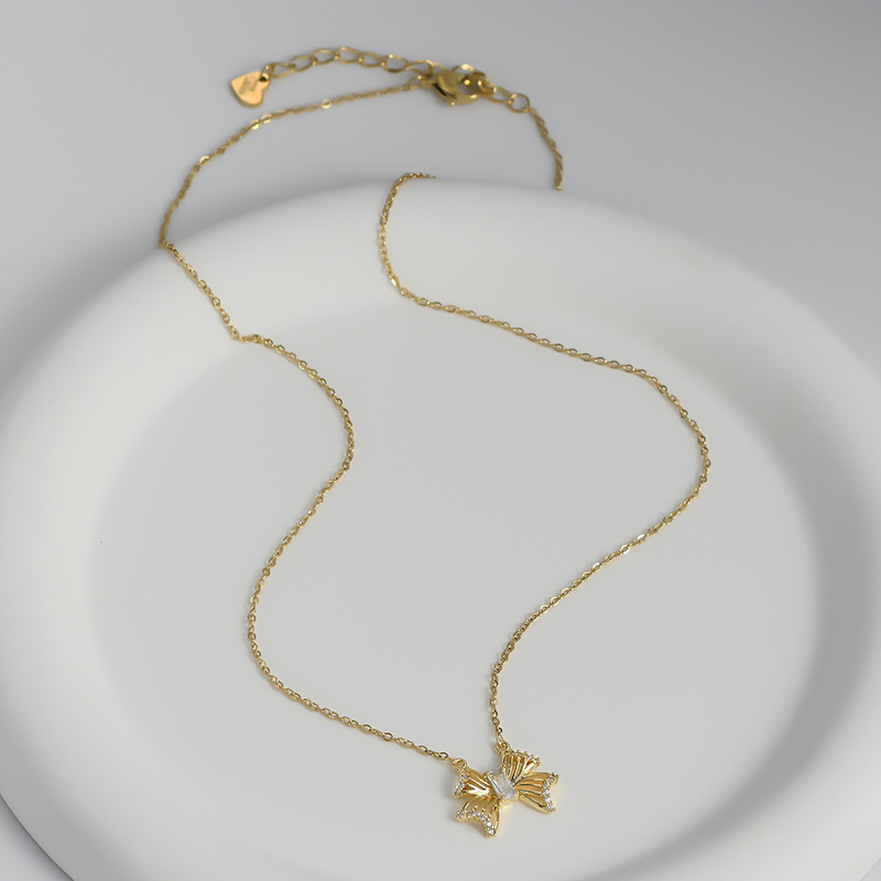 真金电镀镶锆石气质锁骨链女小众设计感蝴蝶结项链通勤风白领颈链 English | 投诉