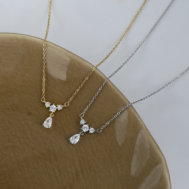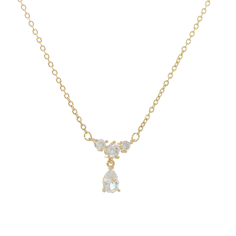 真金电镀微镶锆石气质锁骨链女小众设计感水滴吊坠项链ins风颈链 English | 投诉