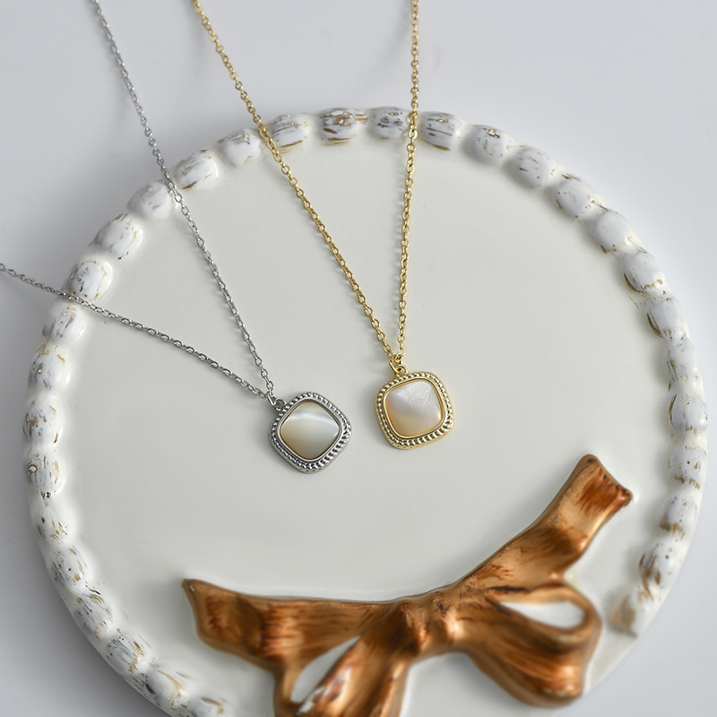 2023年新款气质锁骨链女小众设计感几何方糖项链个性简约贝母颈链 English | 投诉
