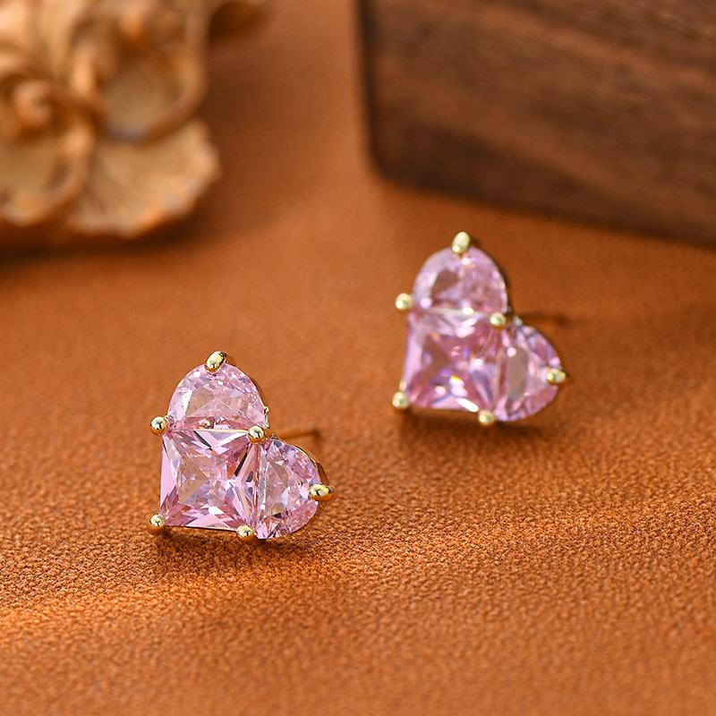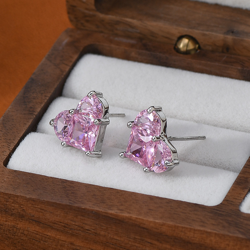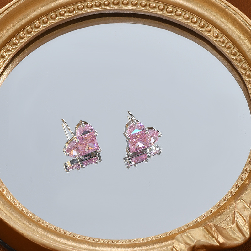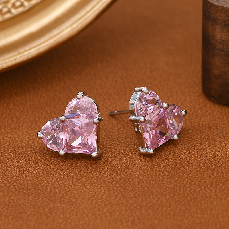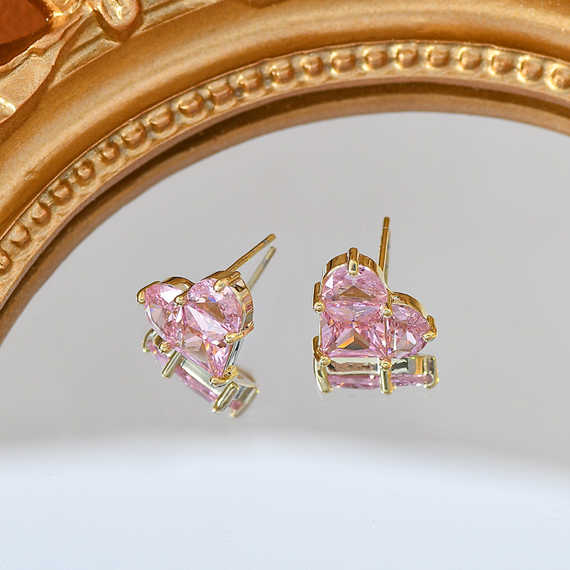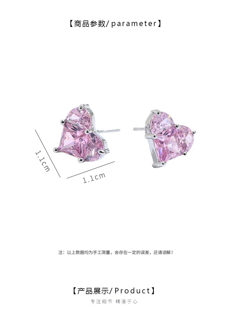 S925银针粉色爱心耳钉女韩版超闪气质简约桃心耳坠耳环轻奢设计感 English | 投诉