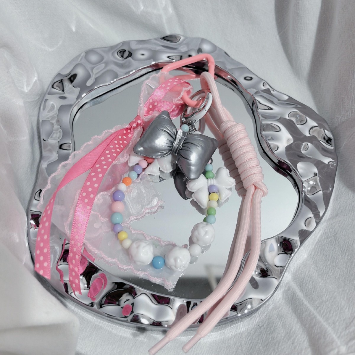 产地: 义乌 货号: A089 材质: 串珠/珠子 颜色: 粉色 主要下游平台: ebay,亚马逊,wish,LINIO, 有可授权的自有品牌: 是 上市年份/季节: 2024年夏季 风格: 小香风 款式: 钥匙挂饰 流行元素: 无