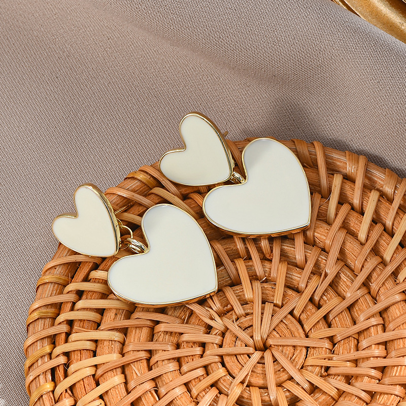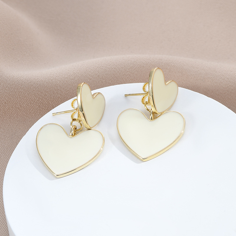 S925银针韩版时尚桃心耳钉女小众设计感甜美可爱奶油色耳饰品 English | 投诉