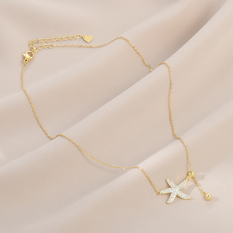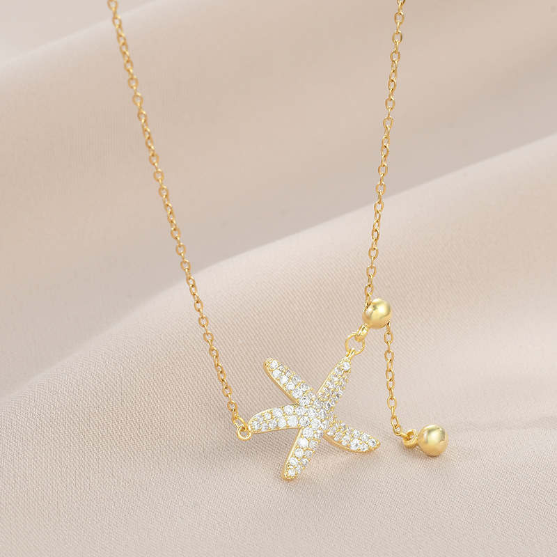 真金电镀镶锆石气质锁骨链女小众设计感海星流苏项链个性百搭颈链 English | 投诉