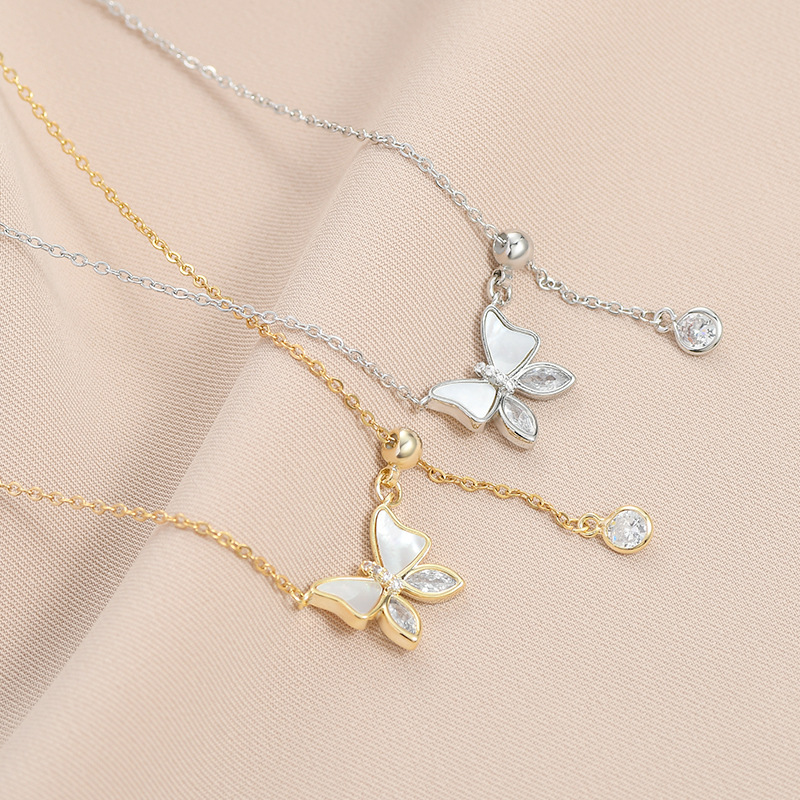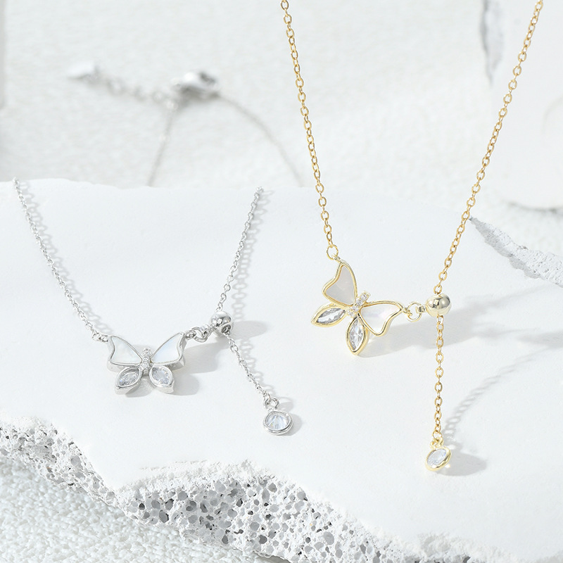 真金电镀镶锆石气质锁骨链女小众设计感贝壳蝴蝶流苏项链百搭颈链 English | 投诉