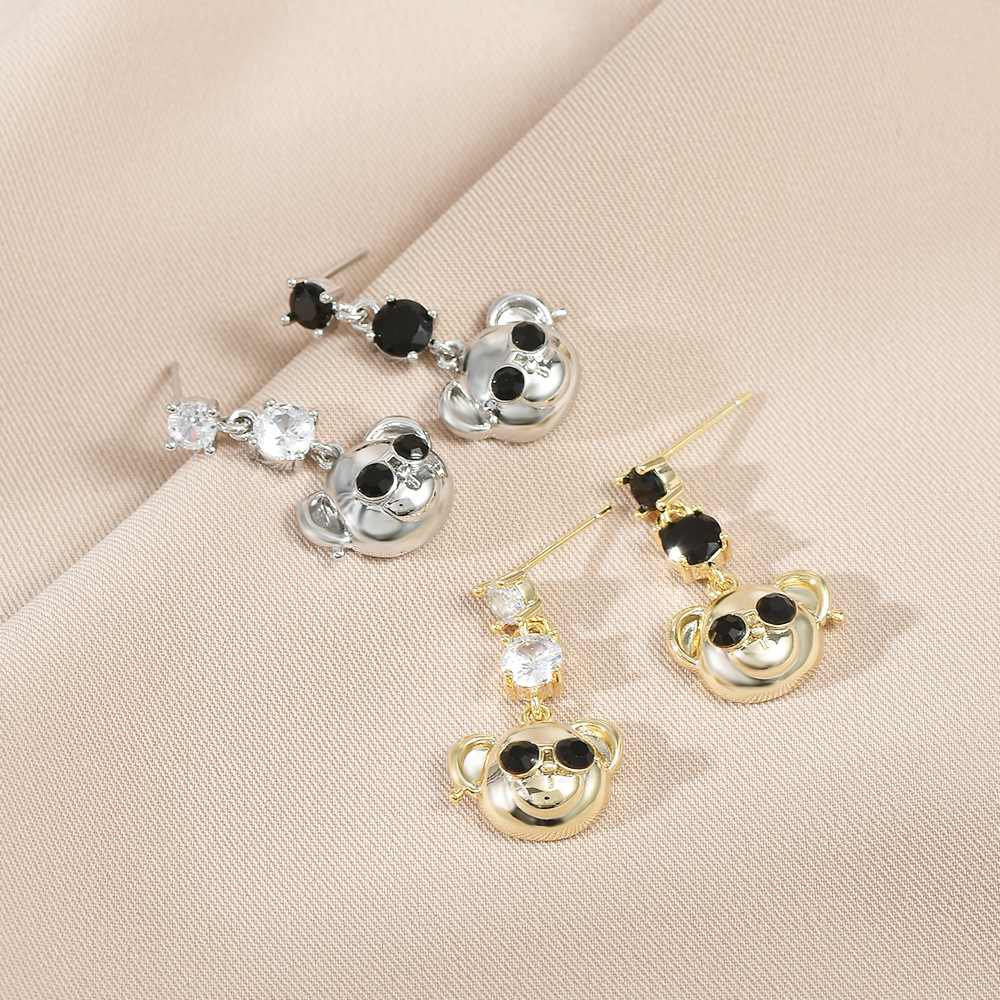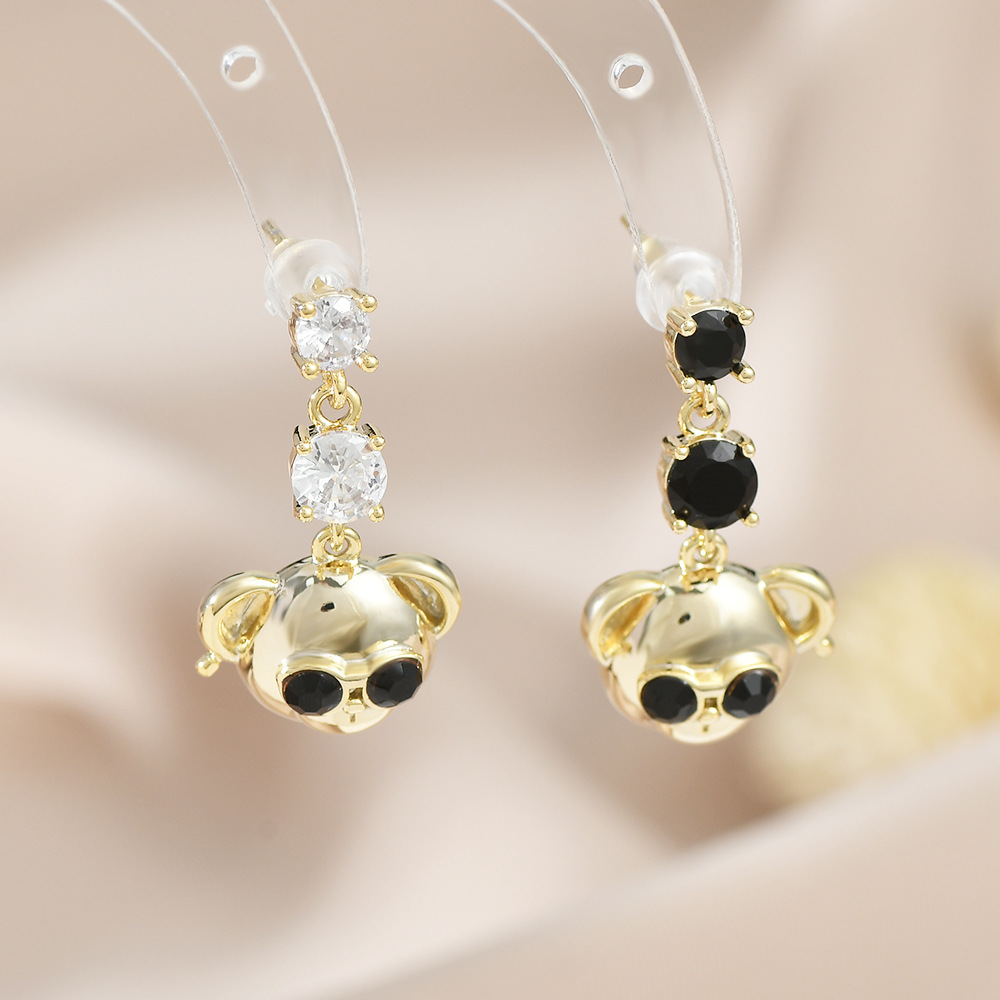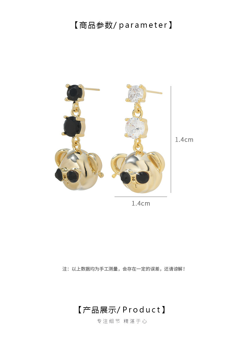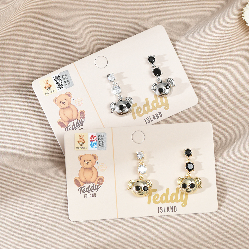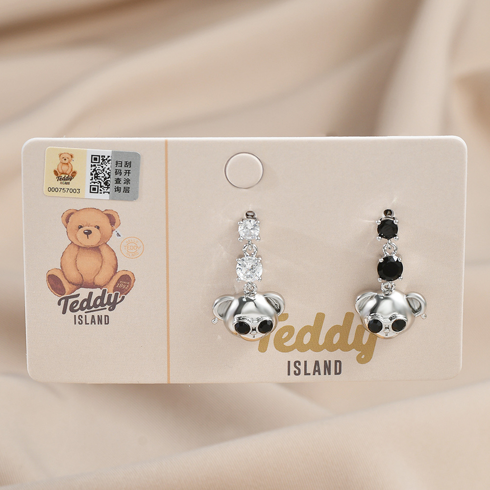 原创设计师系列S925银针镶锆石泰迪熊耳钉女高级感长款小熊耳饰品 English | 投诉