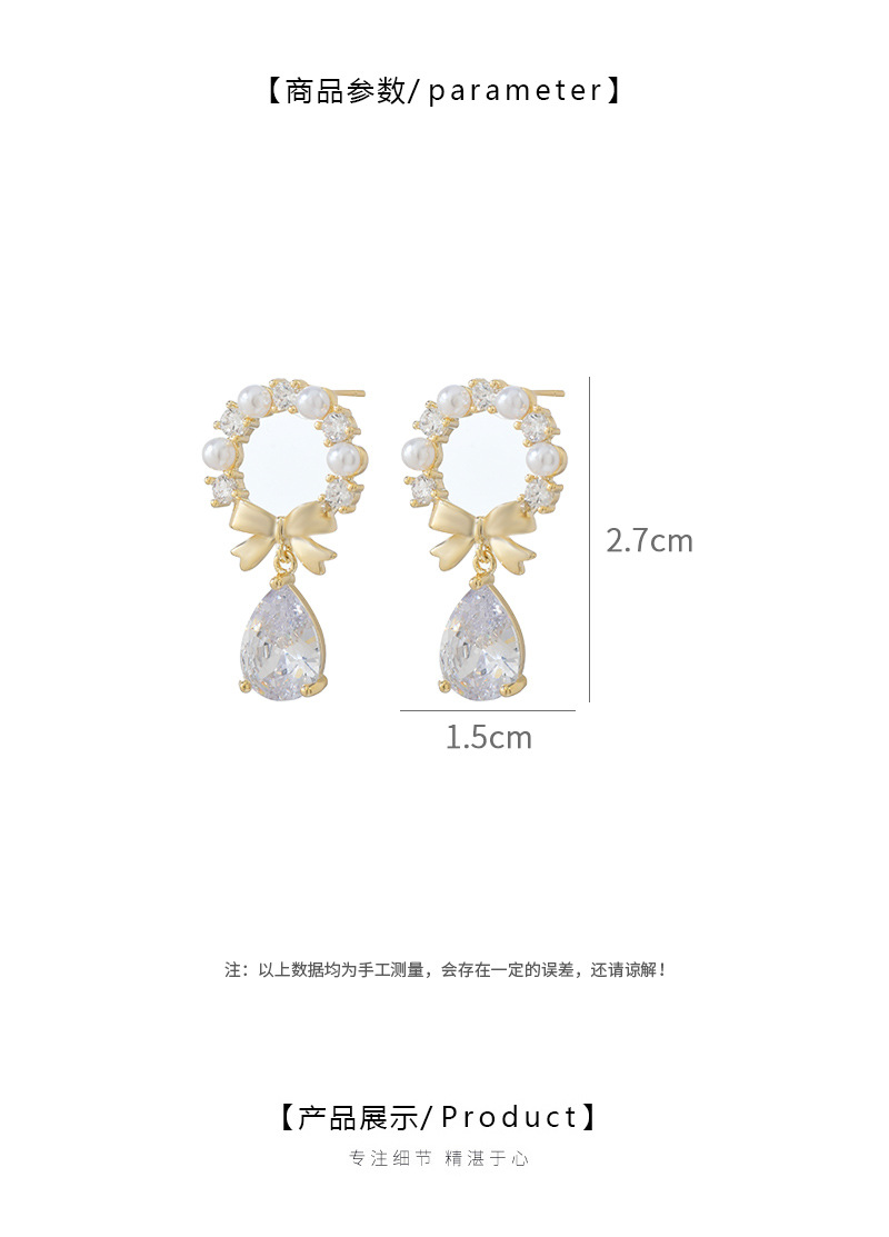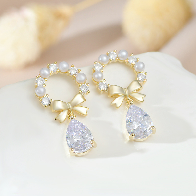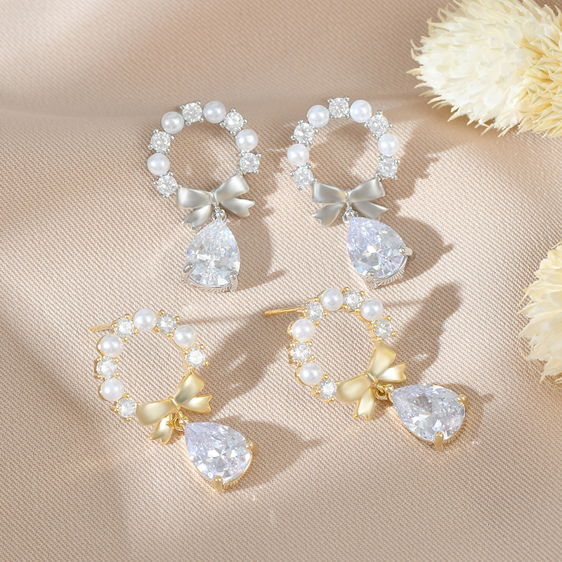 秋冬新款潮气质耳钉女S925银针高级感蝴蝶结珍珠耳饰百搭水滴耳环 English | 投诉