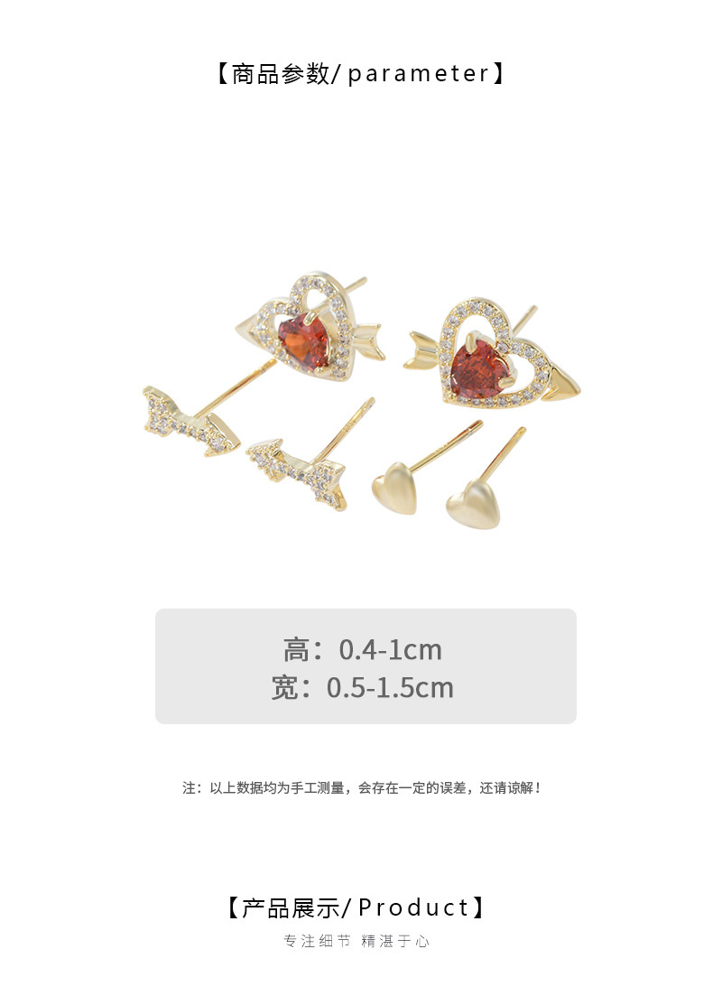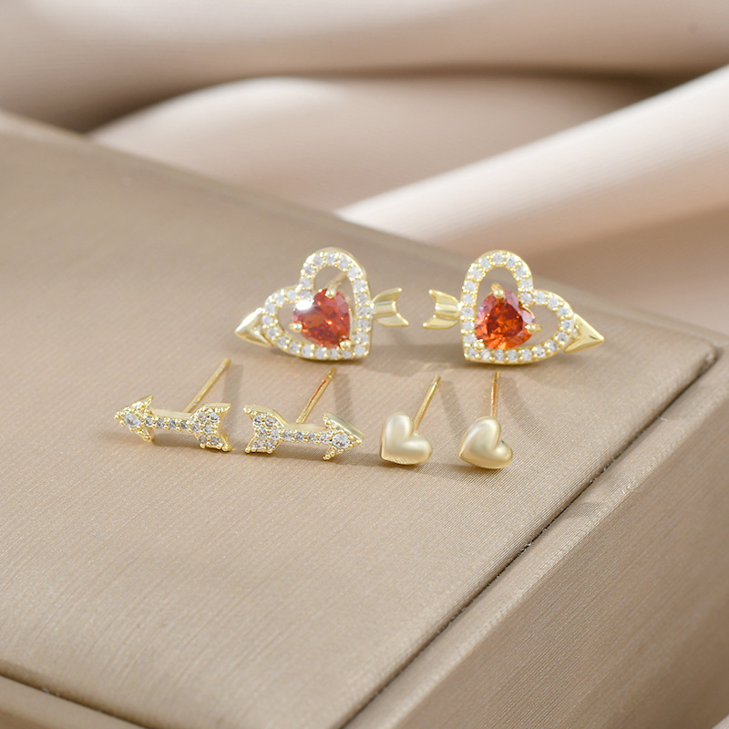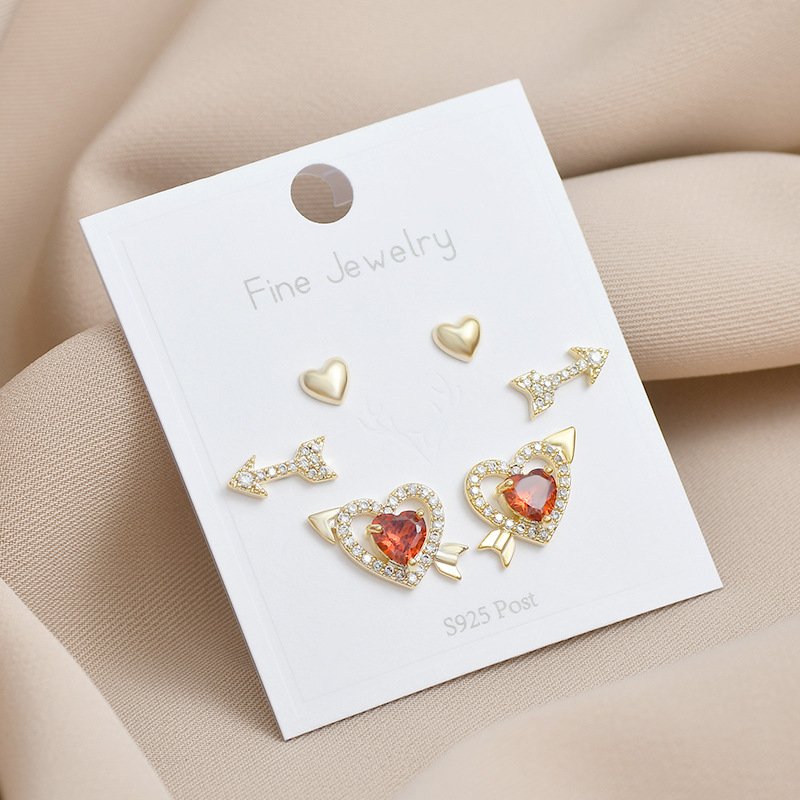 S925银针时尚少女三件套组合耳钉一卡三对爱心学生迷你简约耳饰品 English | 投诉