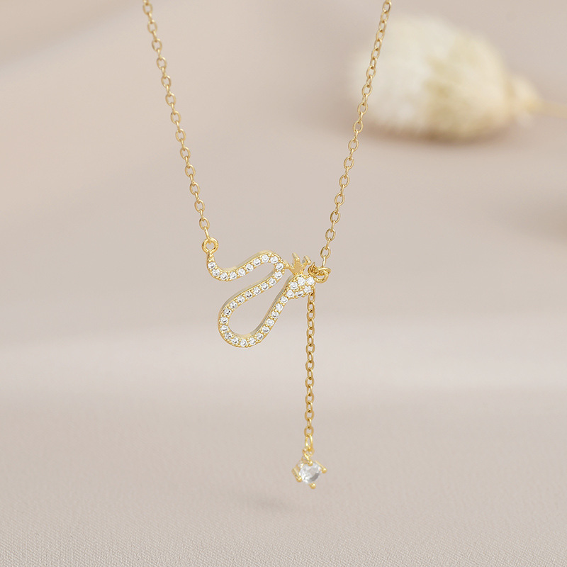 真金电镀微镶锆石气质锁骨链女高级感流苏小蛇项链时尚百搭毛衣链 English | 投诉
