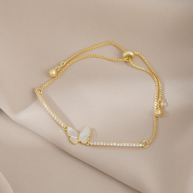 韩国东大门小众设计感贝壳蝴蝶手链女可调节抽拉手镯个性网红手镯 English | 投诉