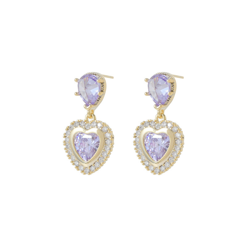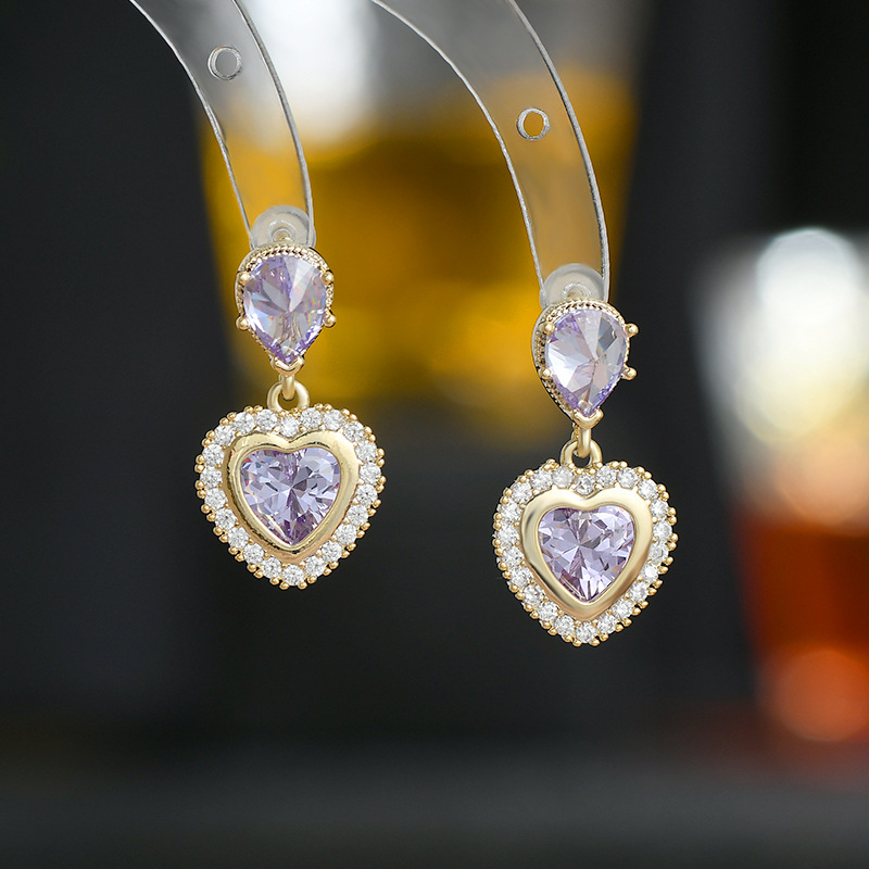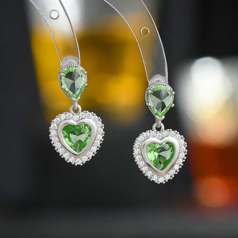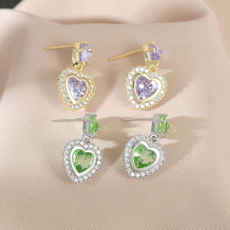 重工微镶彩色锆石气质耳钉女S925银针高级感桃心耳饰欧美时尚耳环 English | 投诉