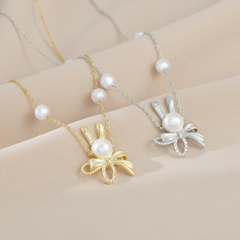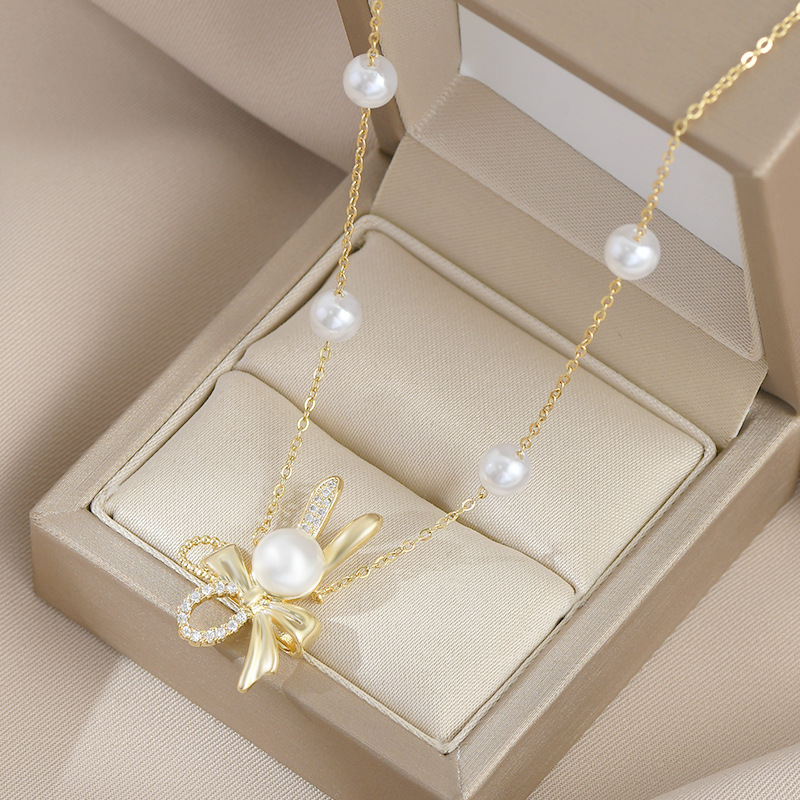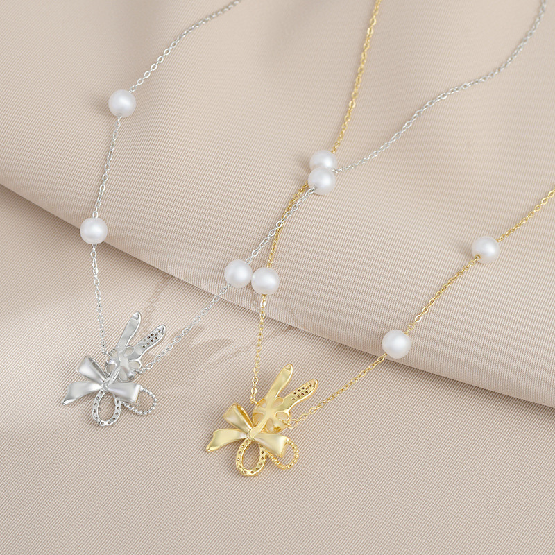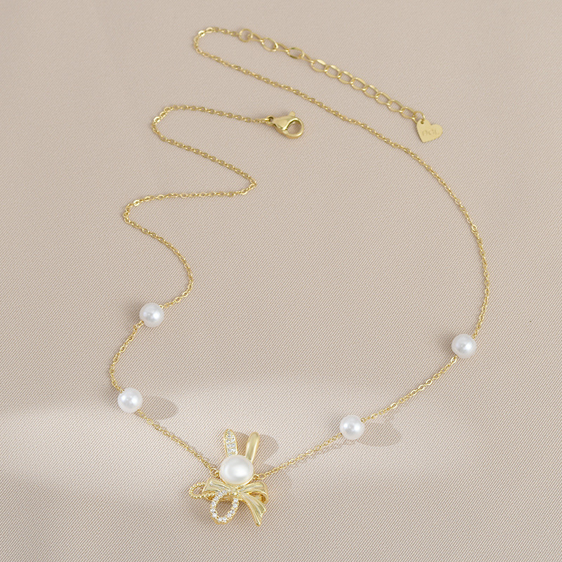 秋冬新款真金电镀气质锁骨链女高级感蝴蝶结珍珠项链精致轻奢颈链 English | 投诉