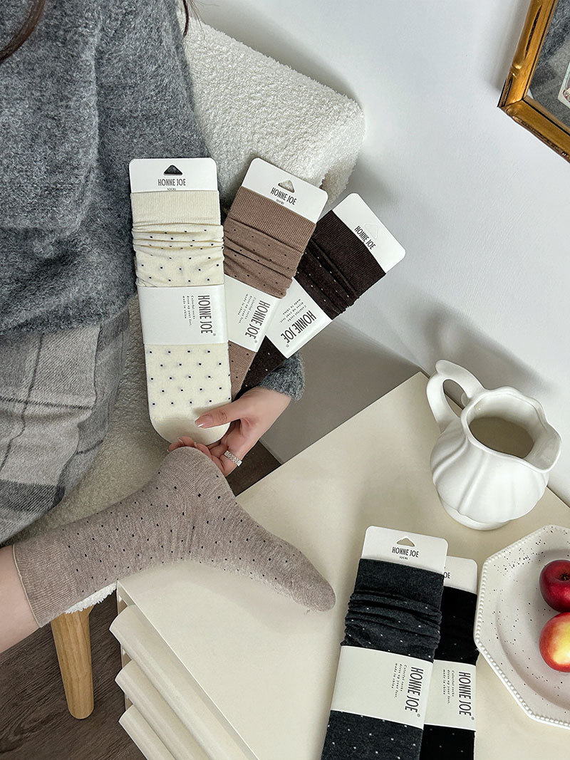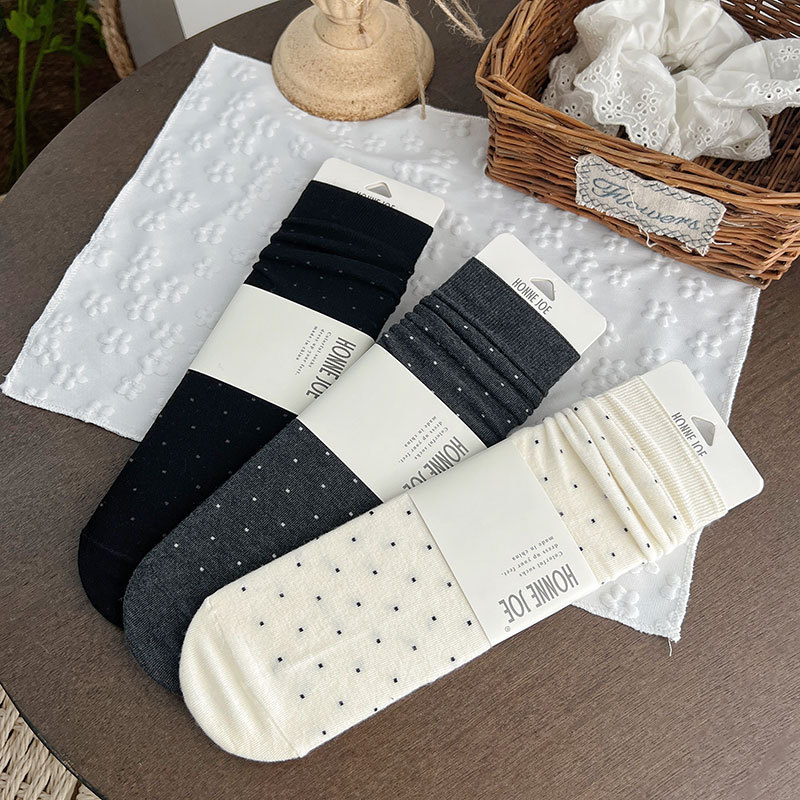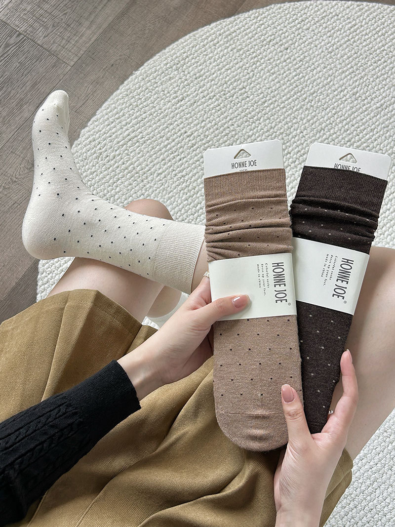 无骨羊毛袜子女秋冬季保暖加厚波点中筒袜子吸汗堆堆袜子女士批发